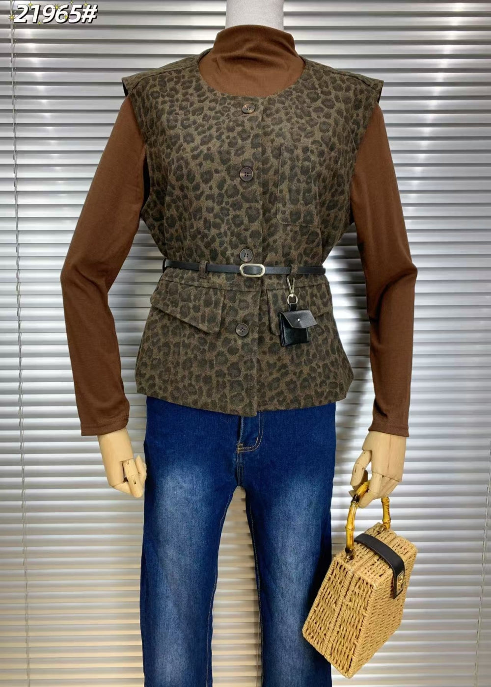 Details: Front button closure, flap pockets, adjustable belt with mini pouch