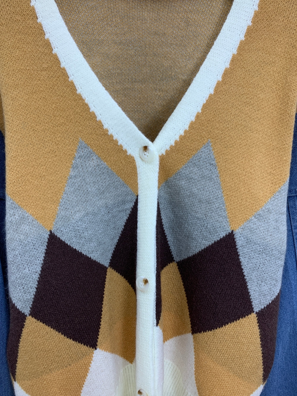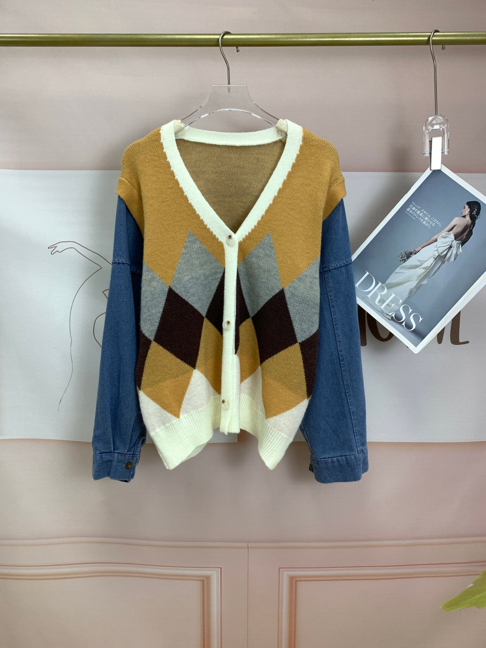 Details: Denim long sleeves, V-neckline, button closure, contrast hem