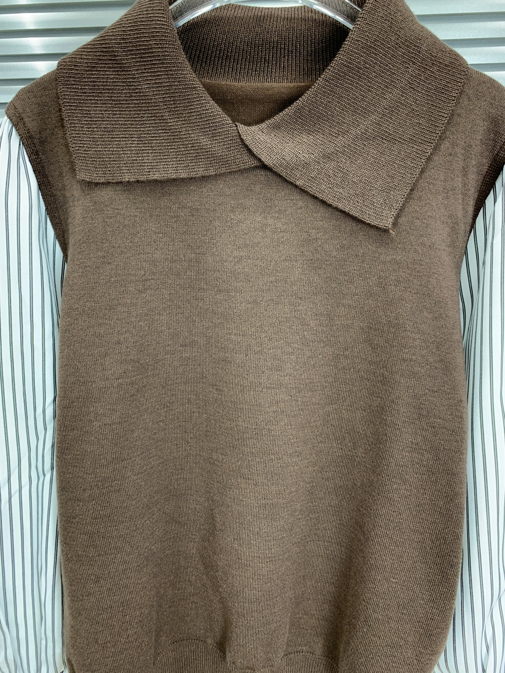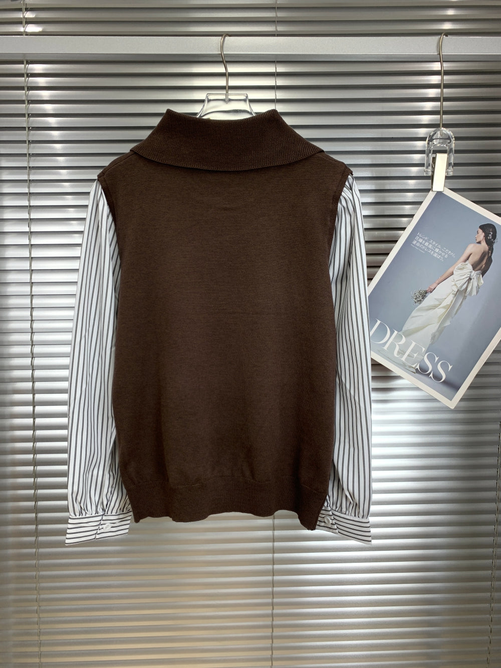 Details: Double collar overlap, long striped shirt sleeves, layered hem design