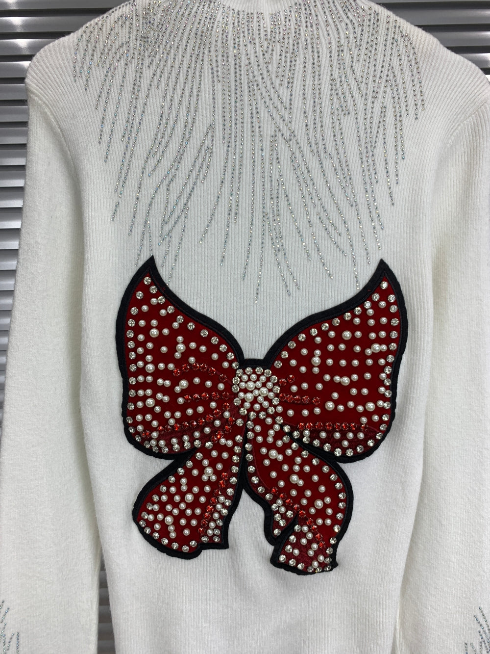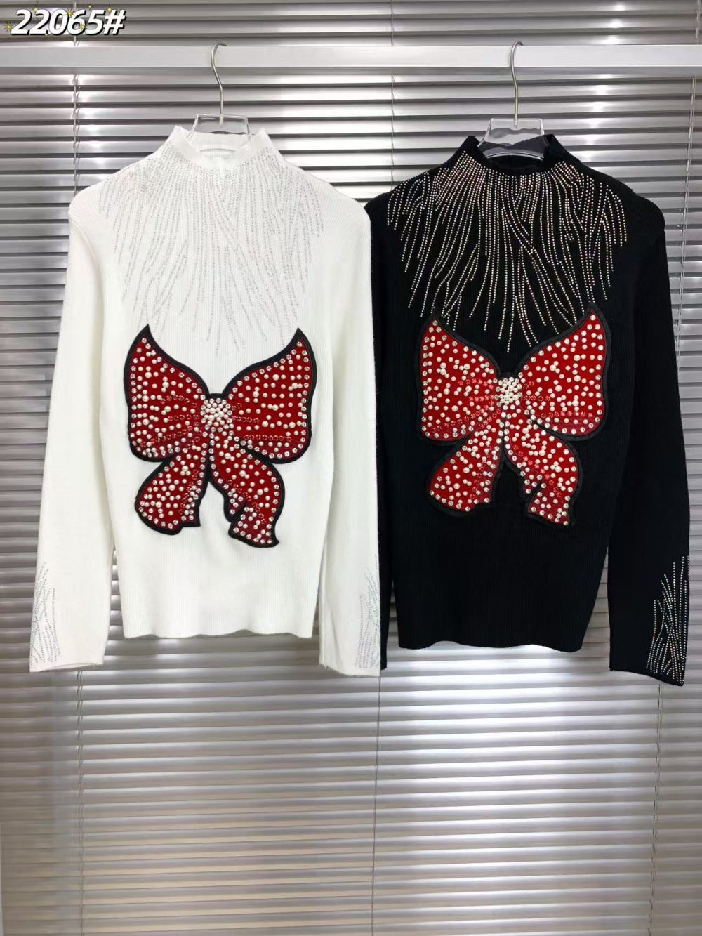22065 Rhinestone Bow Embellished Knit