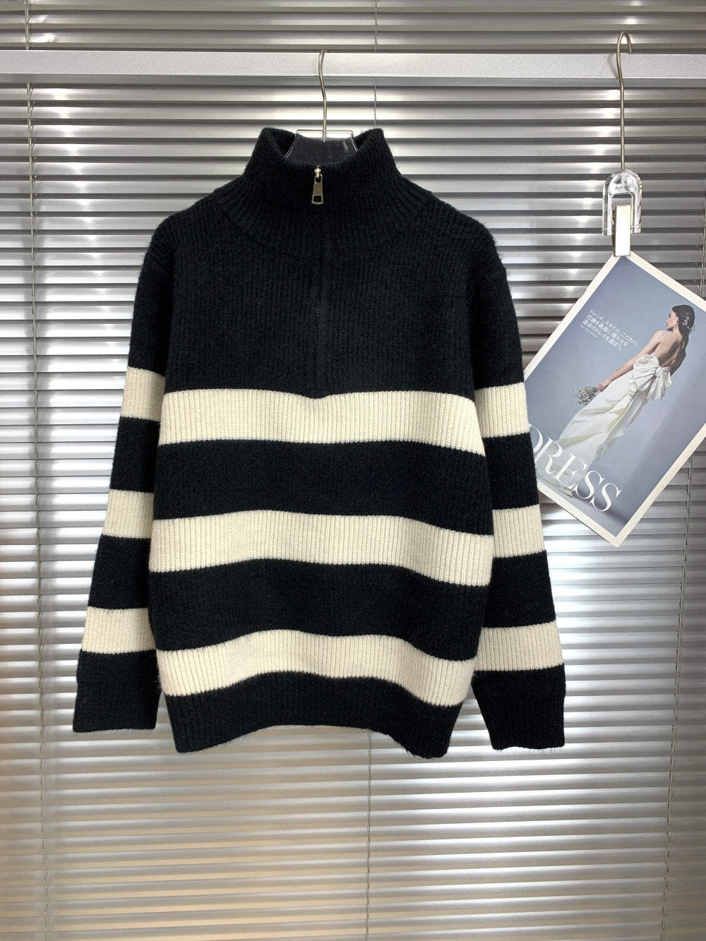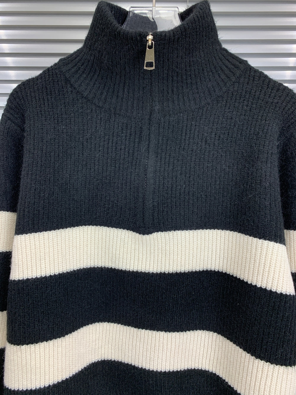 Details: Half-zip collar, drop shoulders, ribbed cuffs and hem