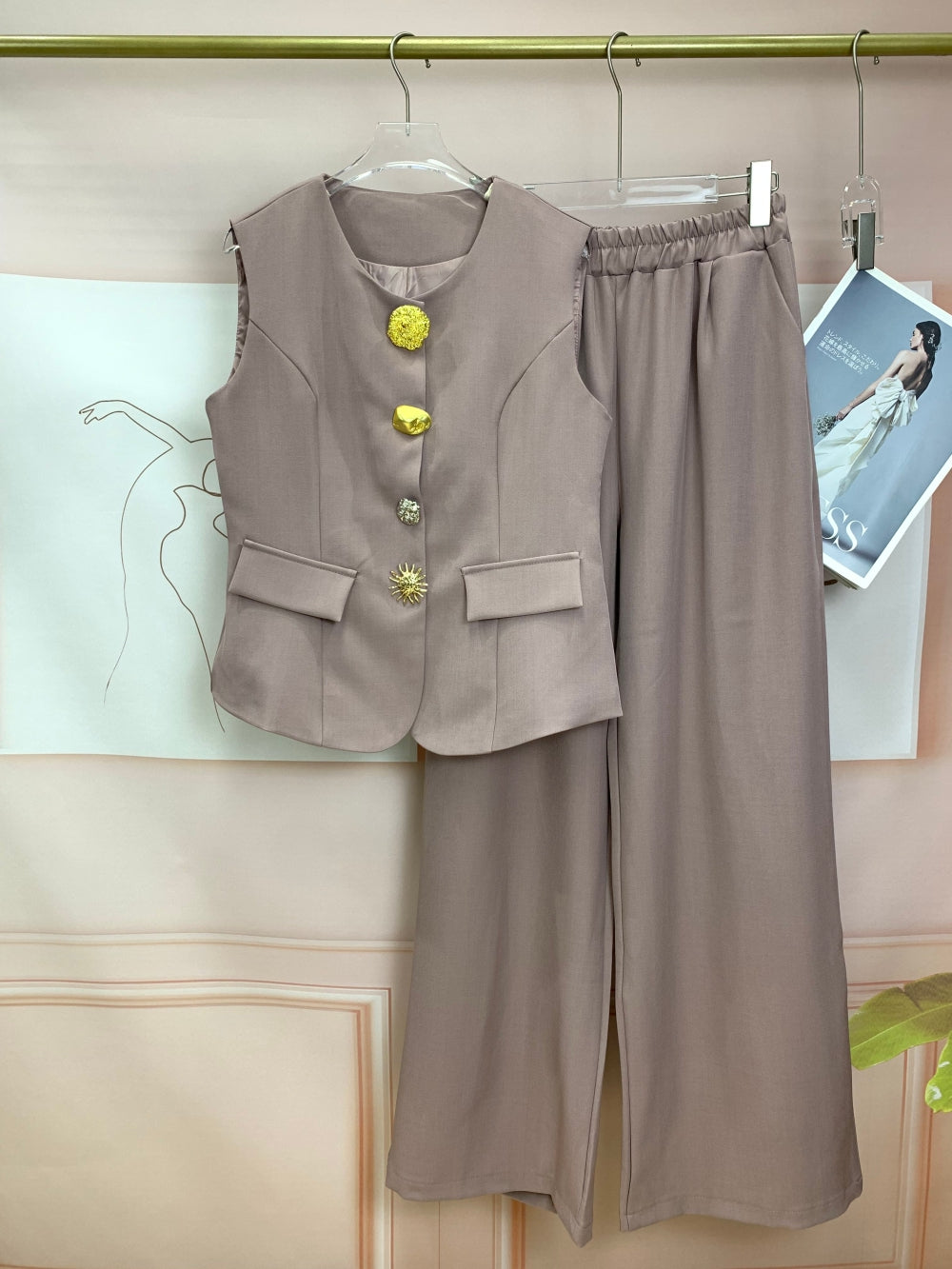 Statement Button Sleeveless Pant Suit
