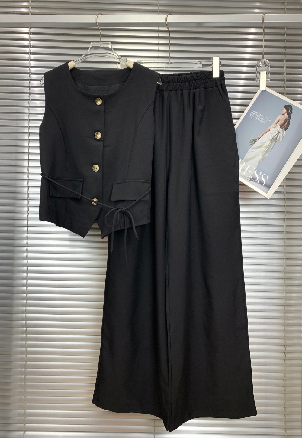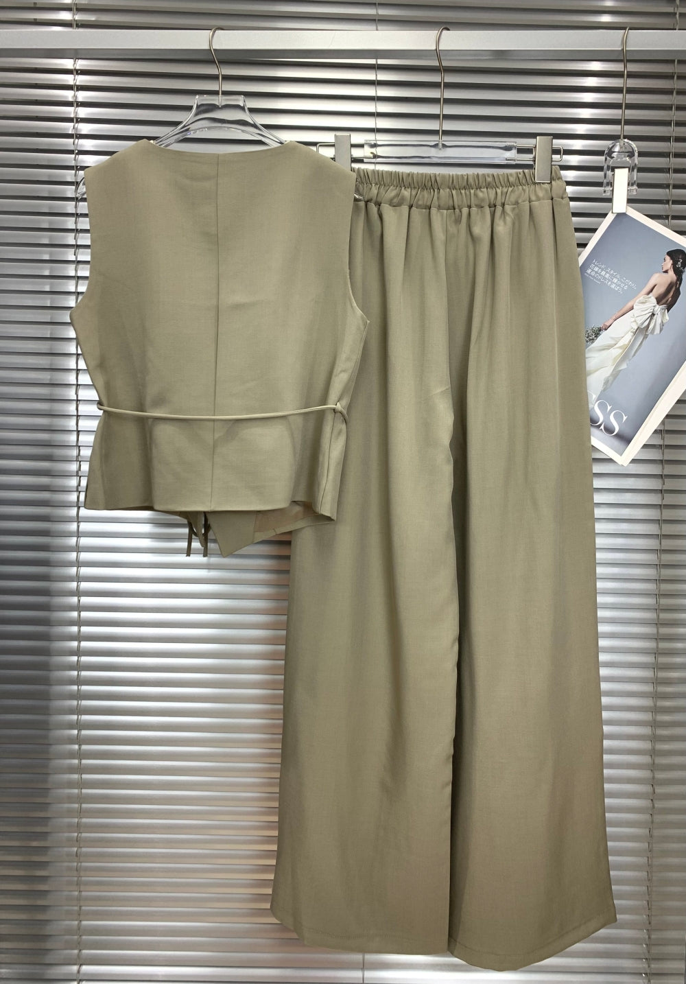 21246 Sleeveless Buttoned Wide-Leg Pants Set