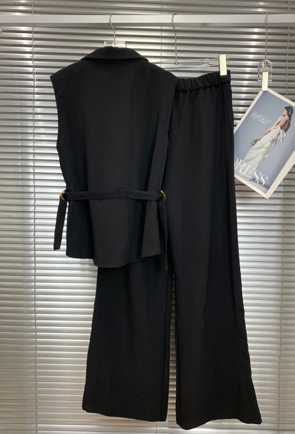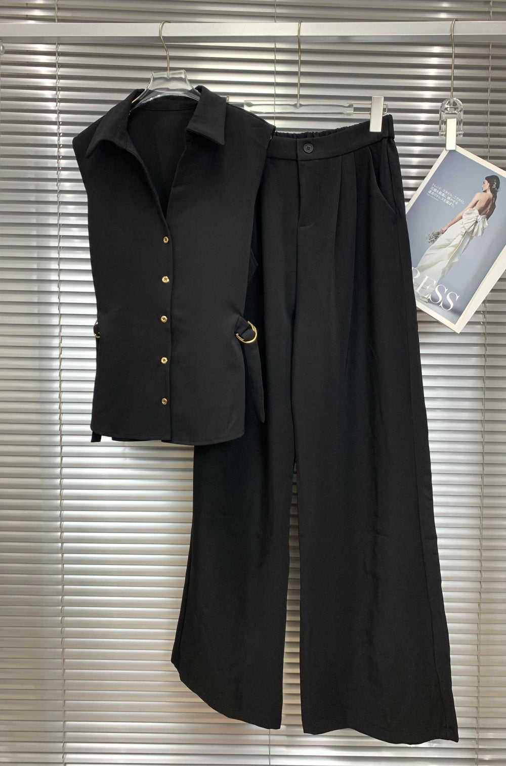 21247 Minimalist Sleeveless Shirt & Wide-Leg Pants Set