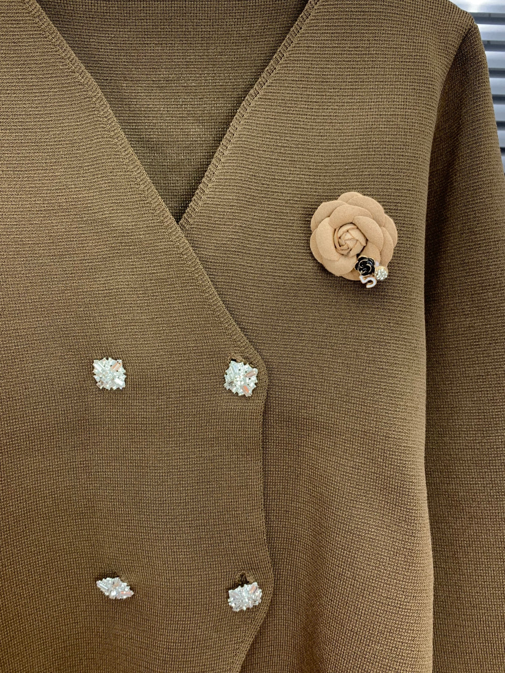 21268 Double-Breasted Knit Blazer with Crystal Buttons