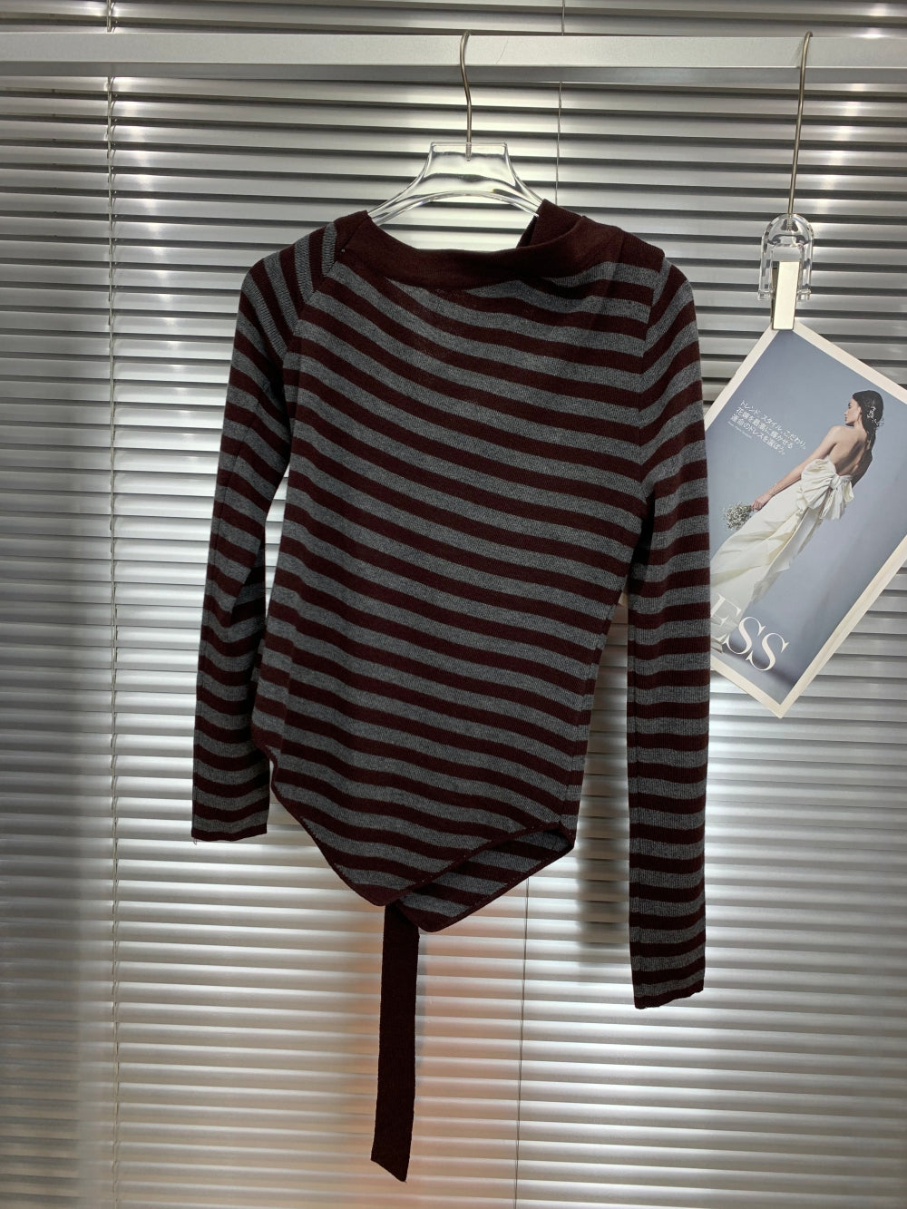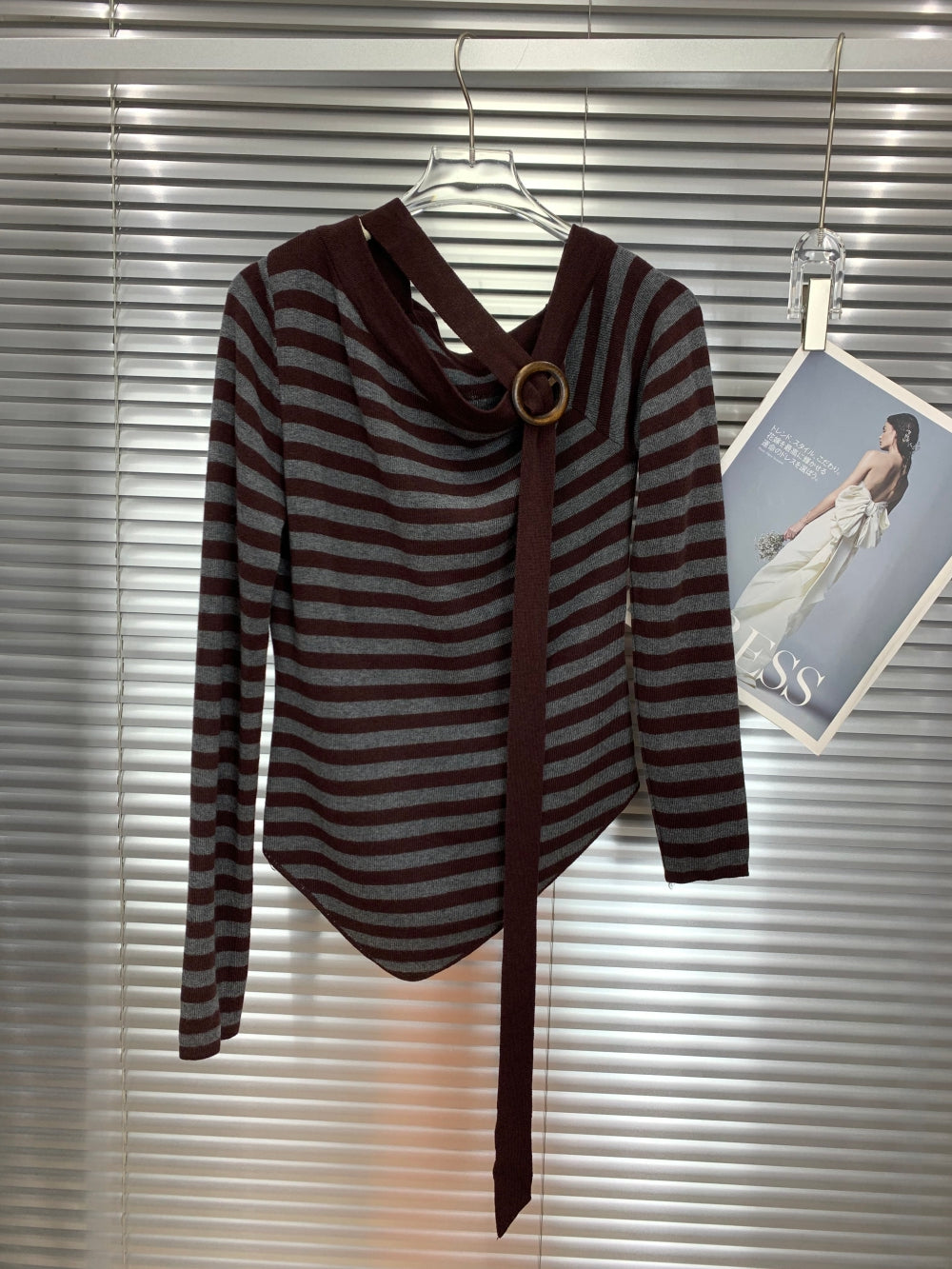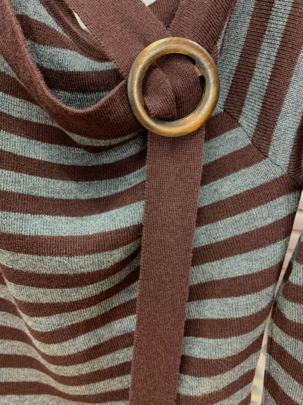 21282 Asymmetric Striped Knit Top with Ring Strap