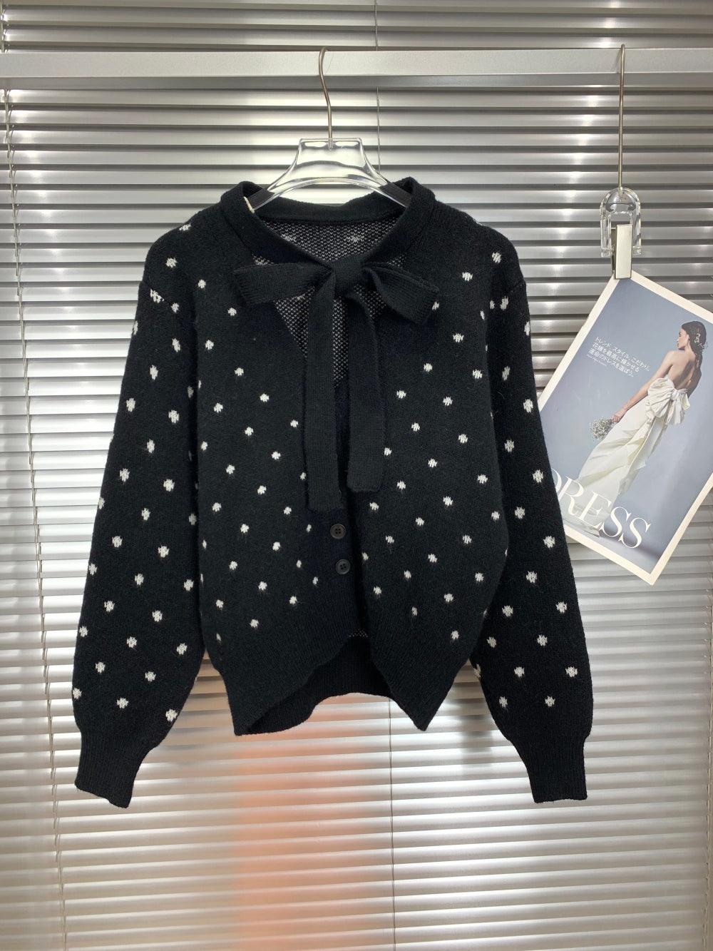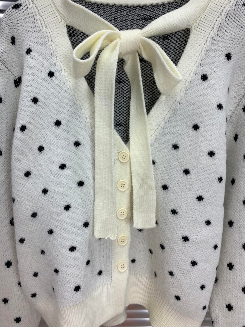 21290 Polka Dot Knit Cardigan with Bow Detail