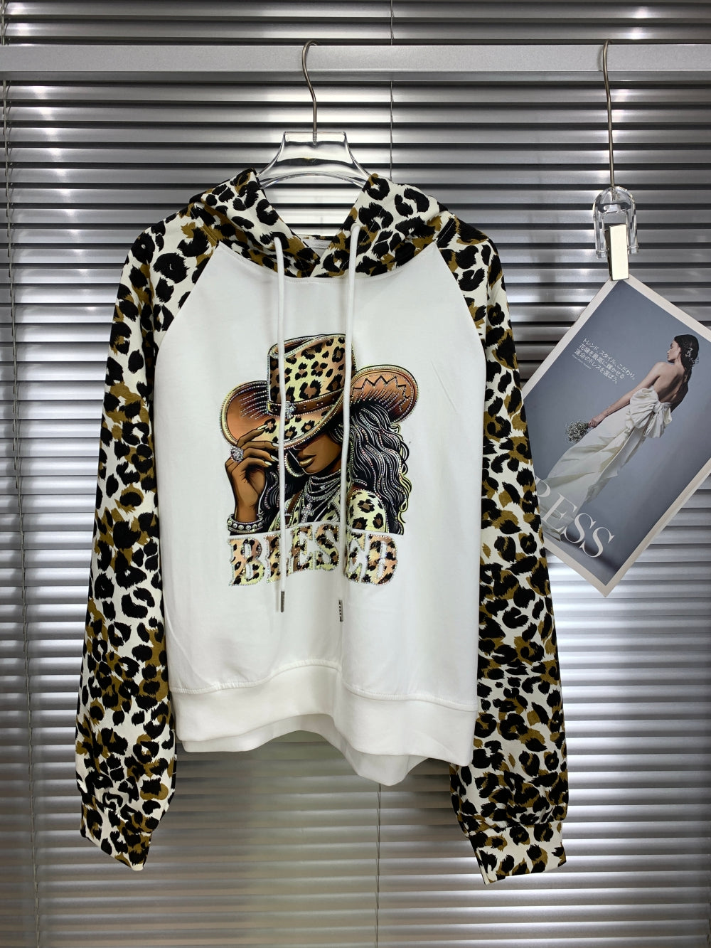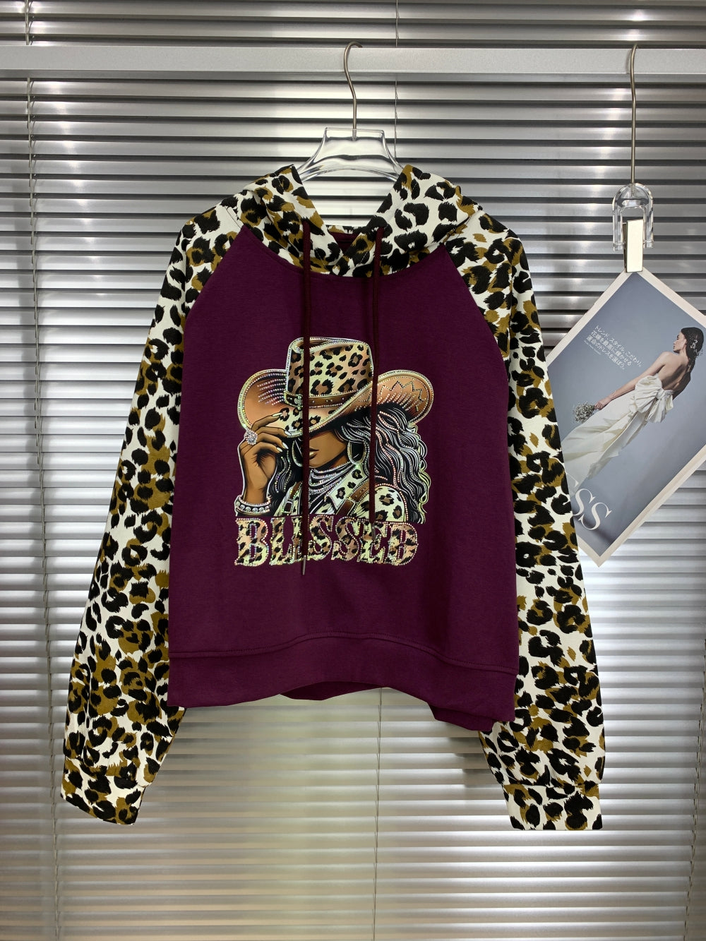 21305 Leopard Sleeve Graphic Hoodie