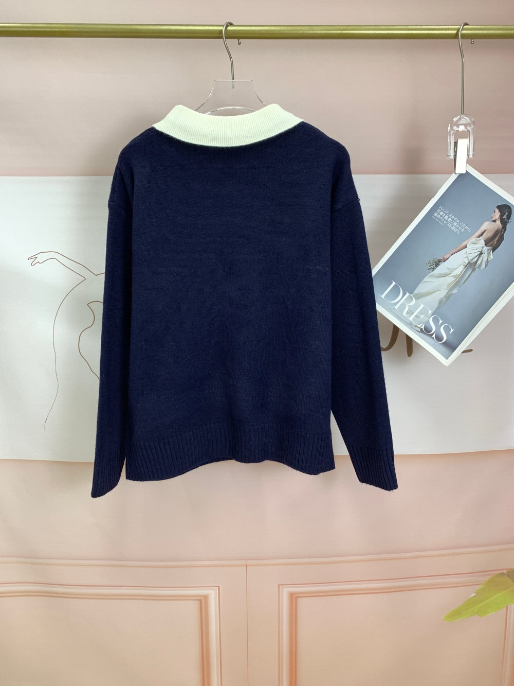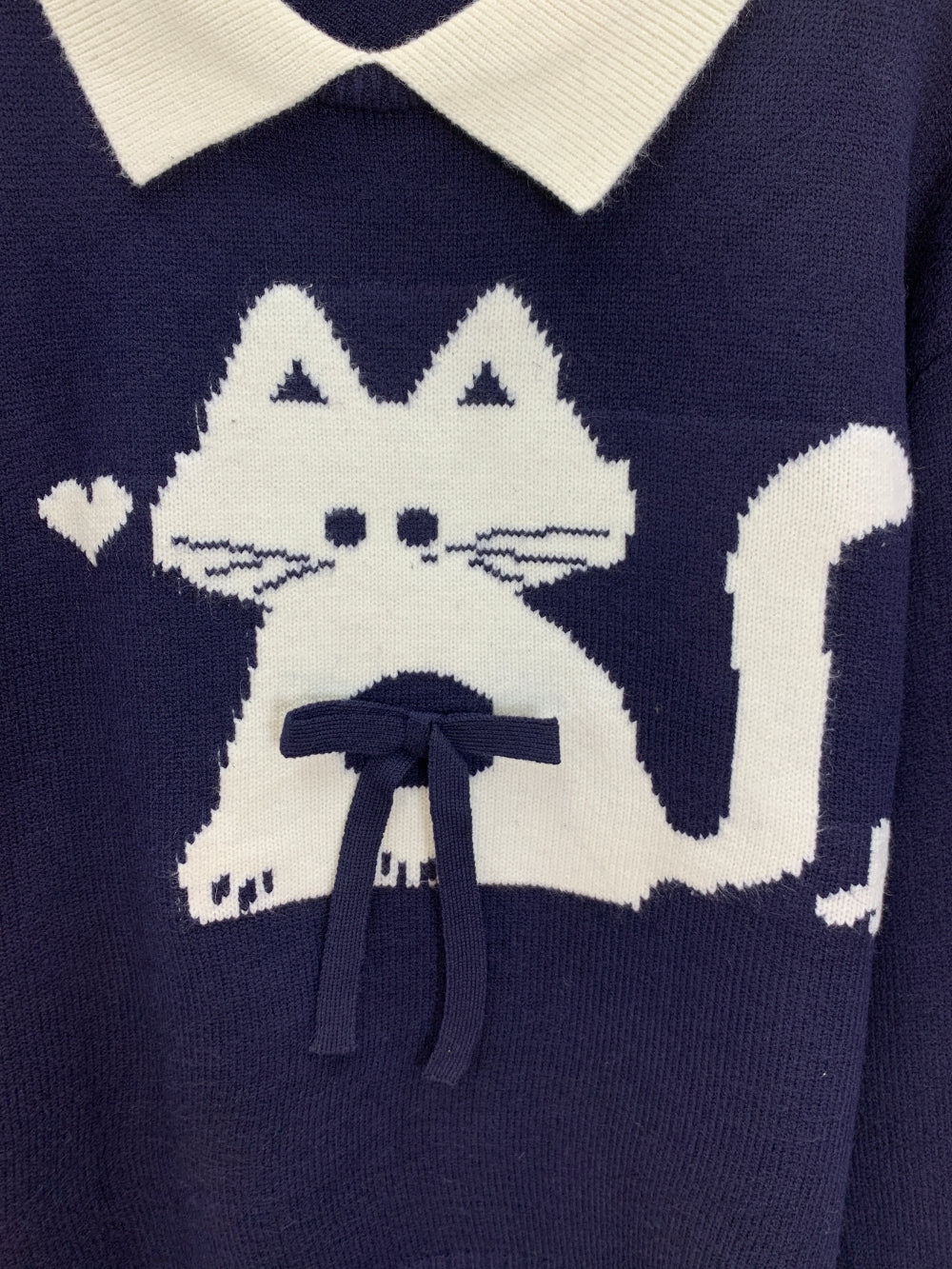 21471 Contrast Collar Cat Graphic Sweater