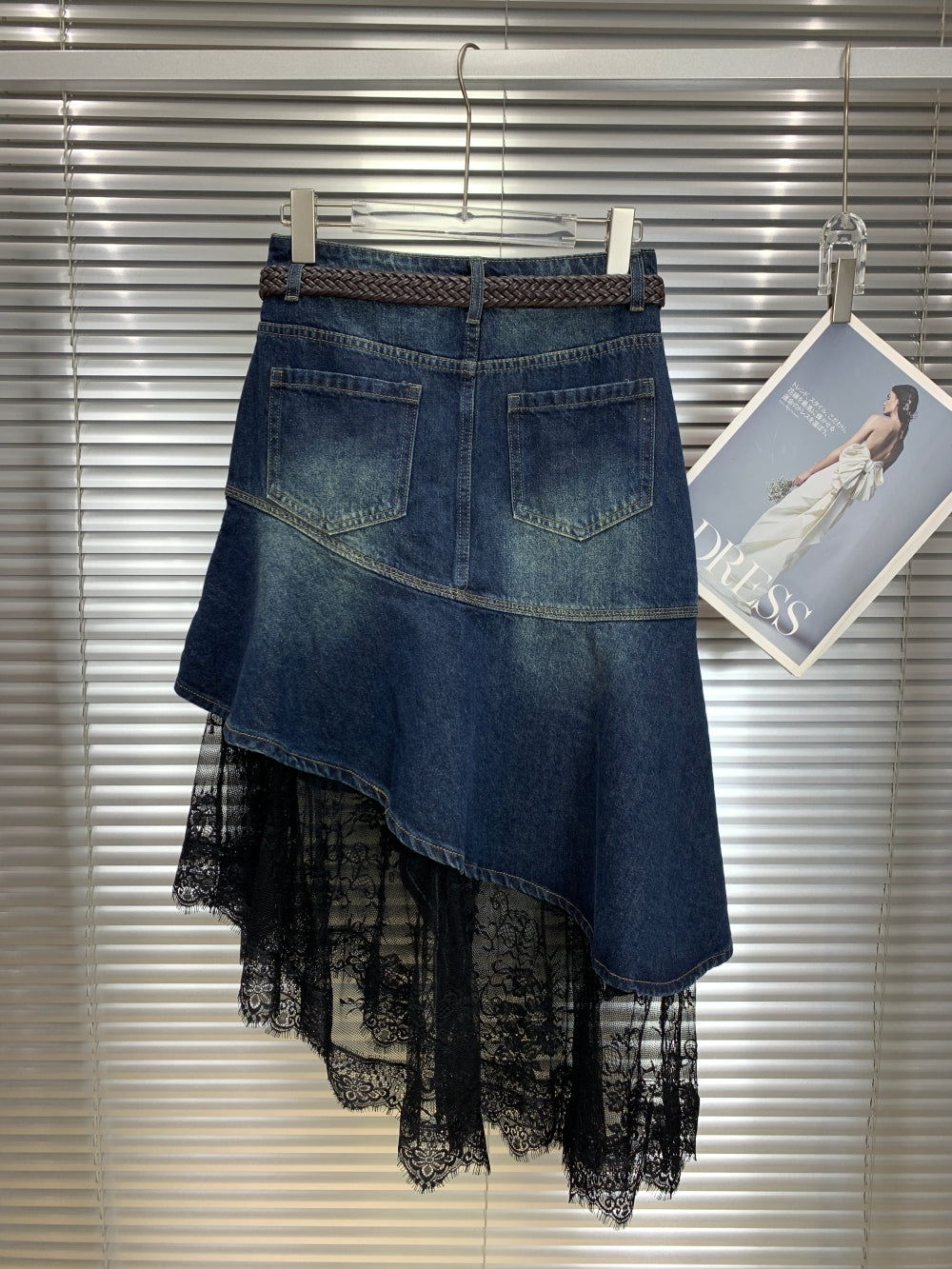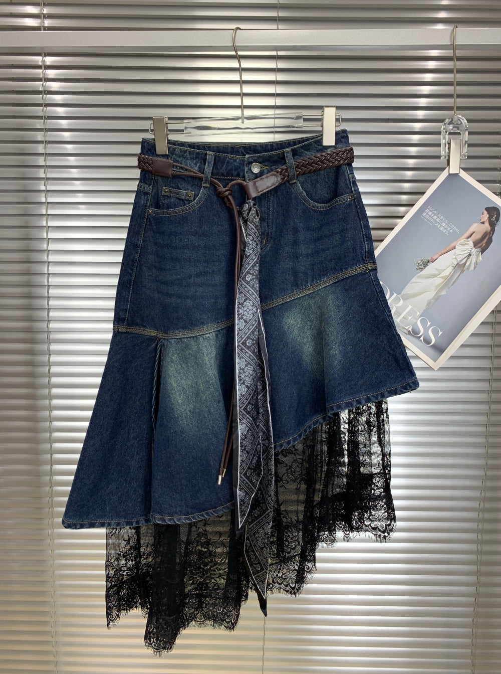 21589 Denim Skirt with Lace Hem