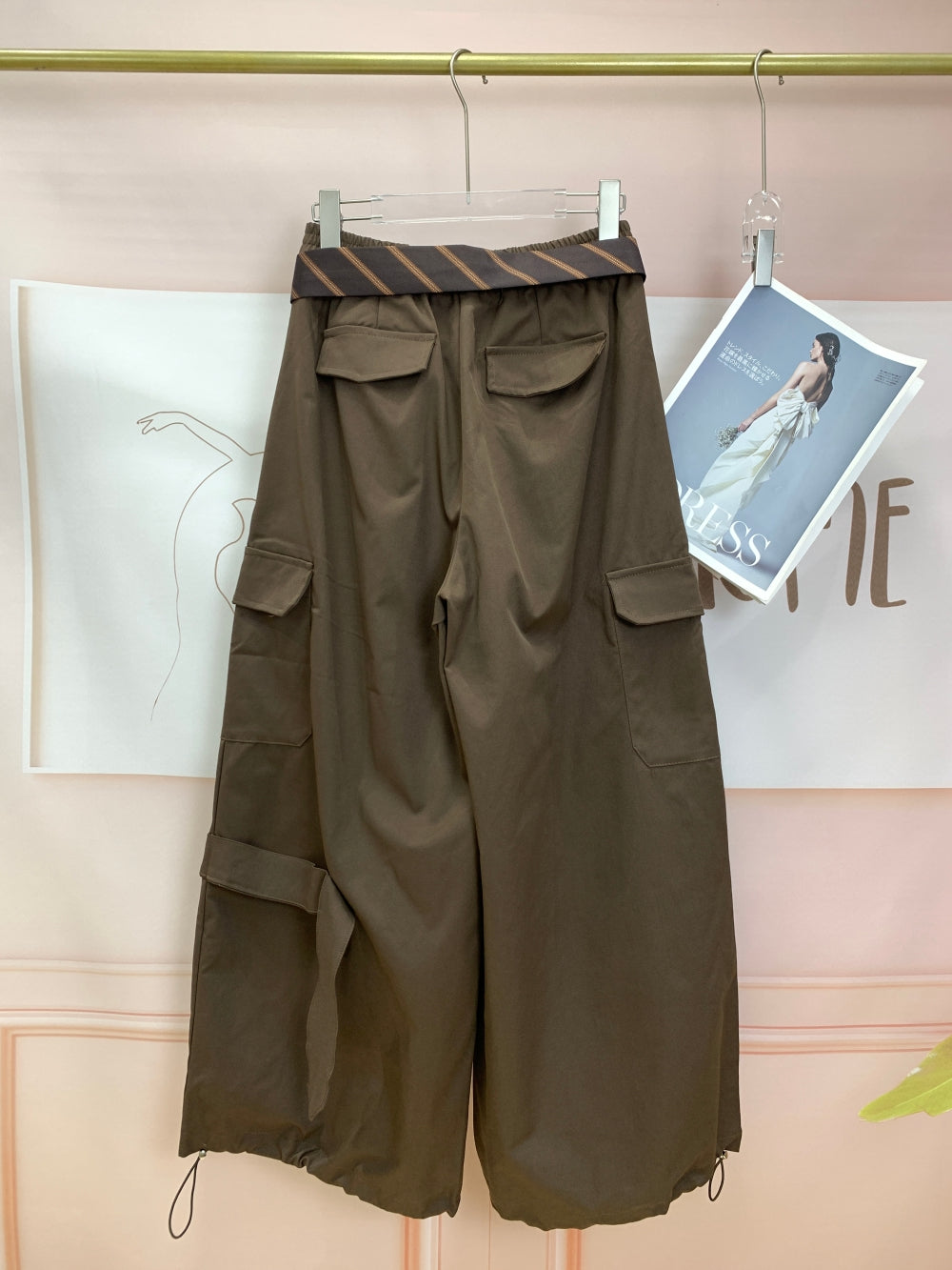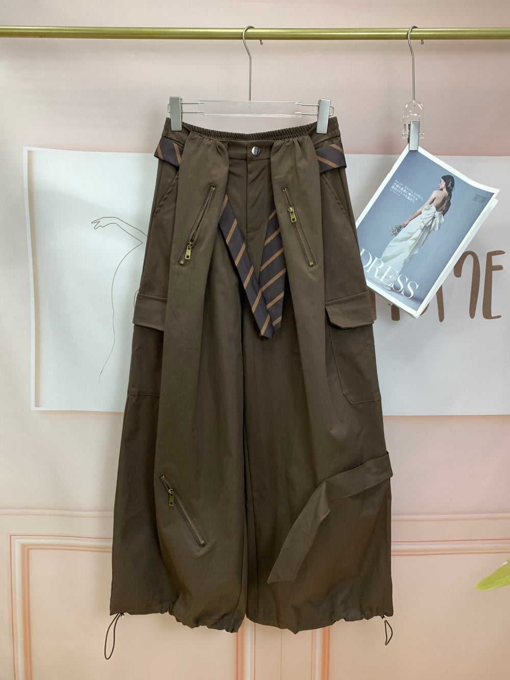 21597 Utility Wide-Leg Pants with Striped Suspenders