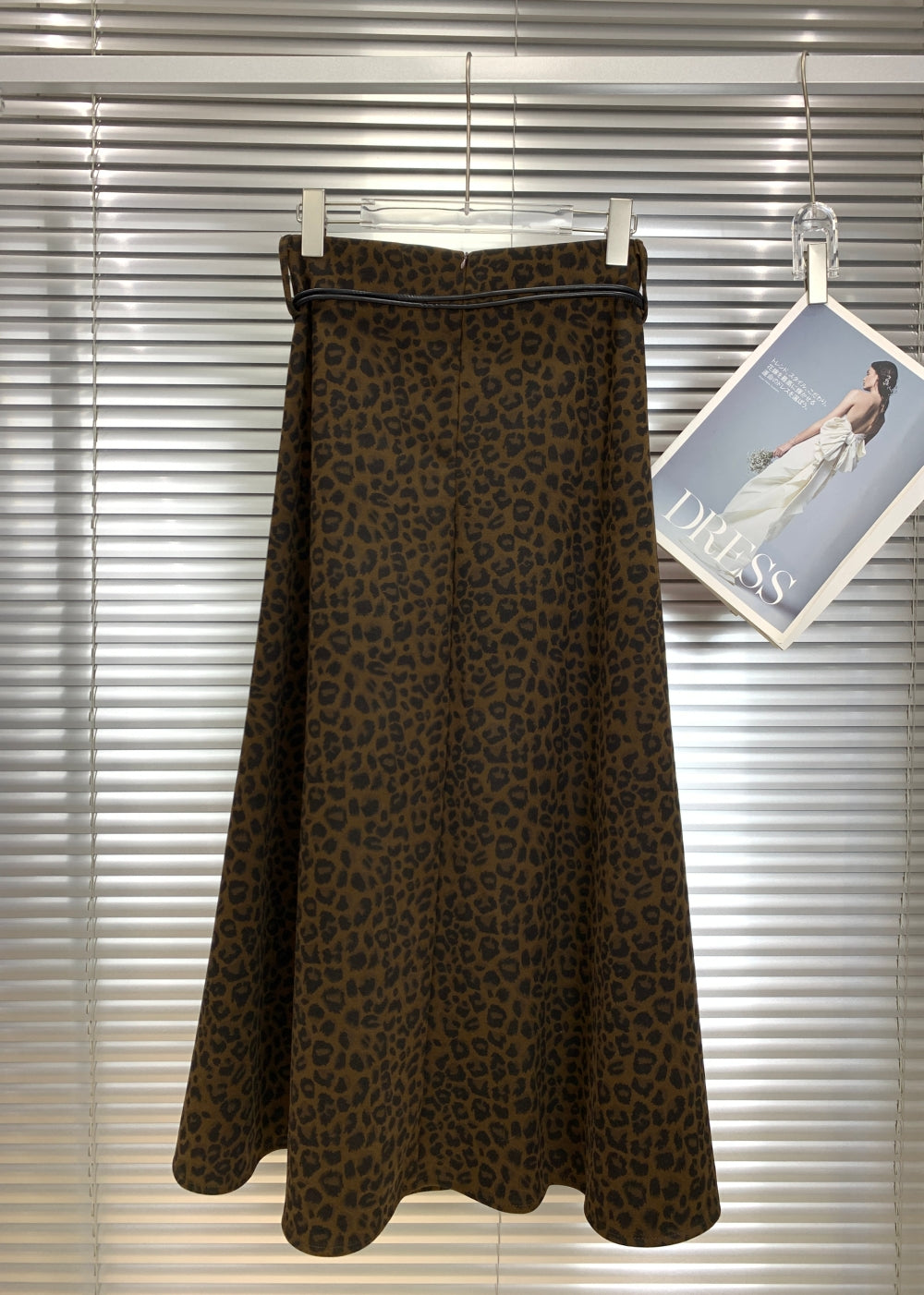 21604 Leopard Print A-Line Skirt with Rope Belt