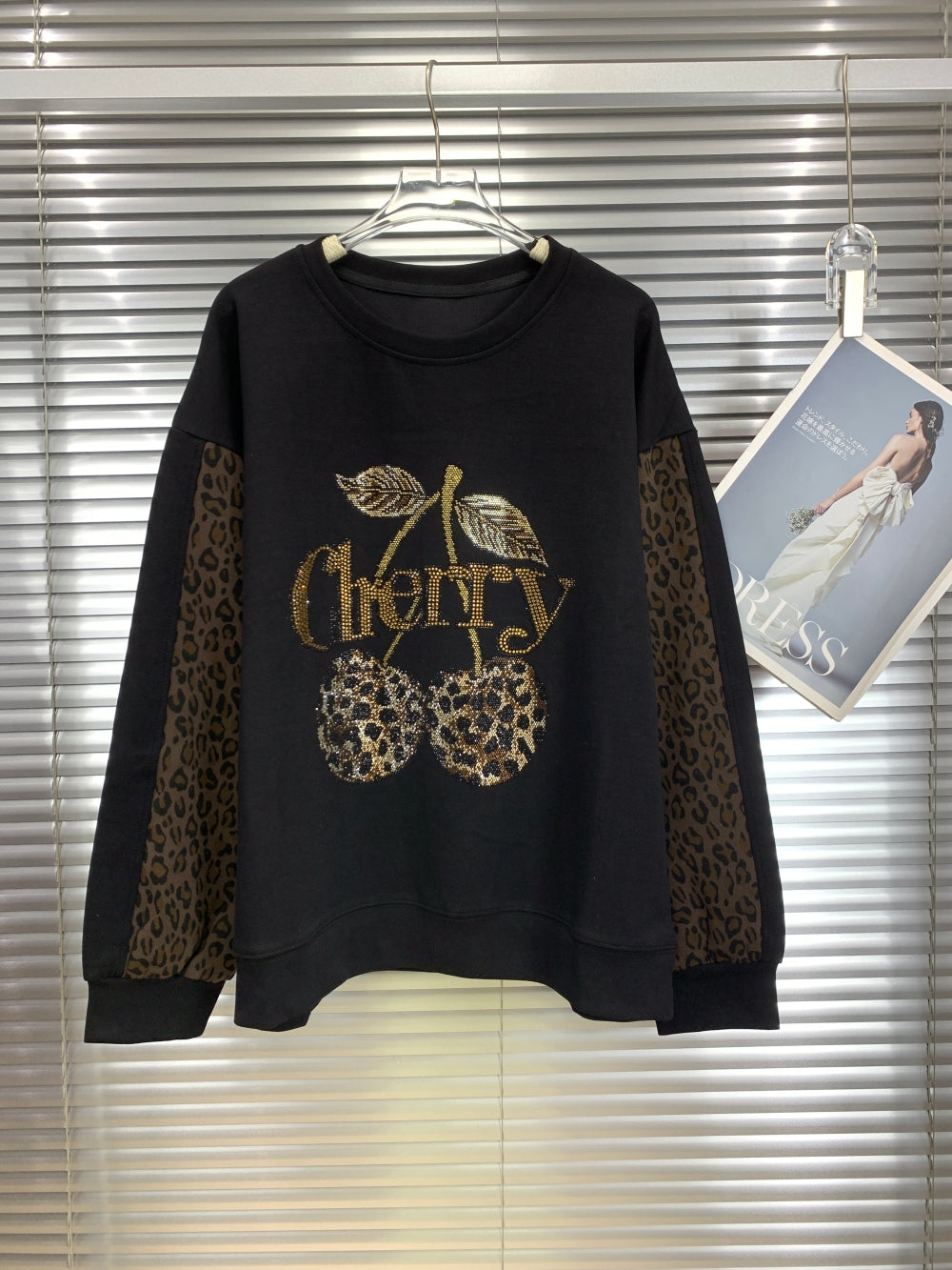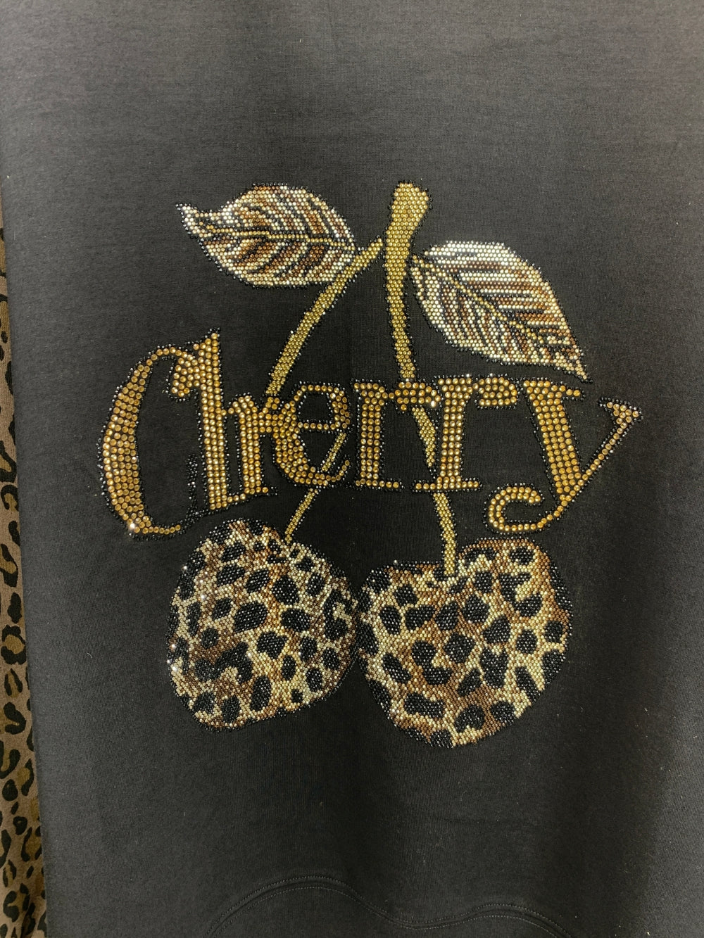 21609 "Cherry" Sequin Sweatshirt with Leopard Panels