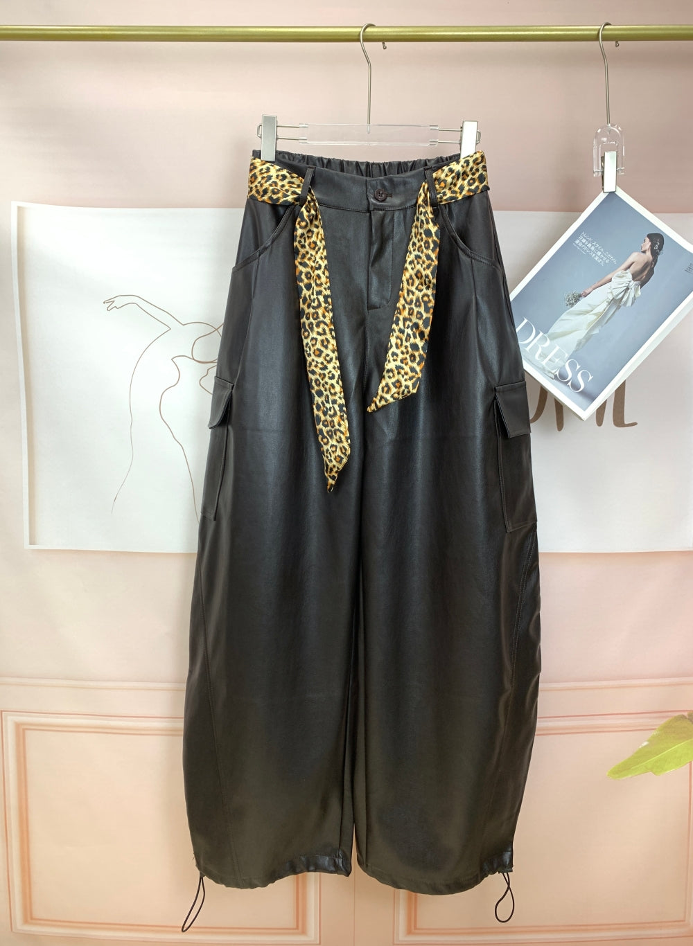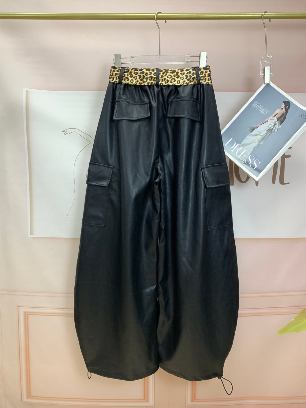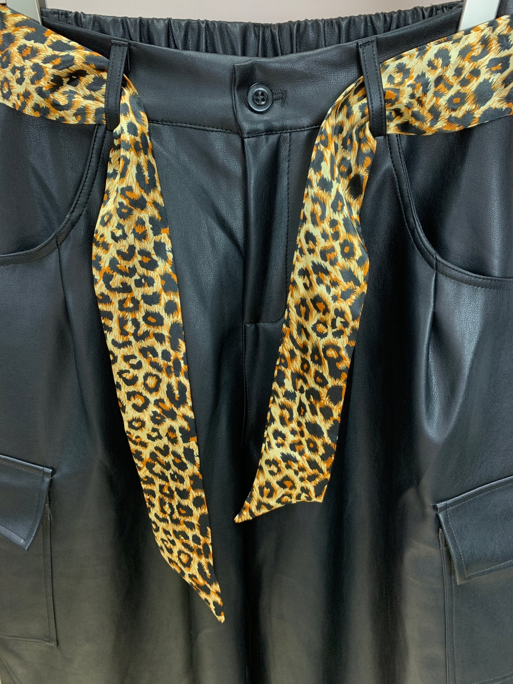 Details: Cargo-style pockets, leopard-print belt tie, adjustable drawcord cuffs