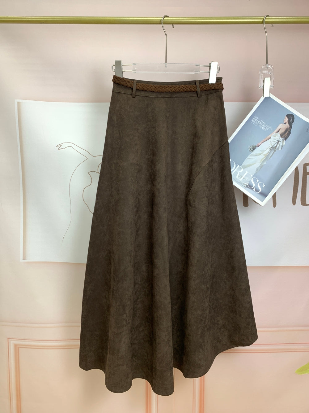 21660 Suede A-Line Midi Skirt with Braided Belt