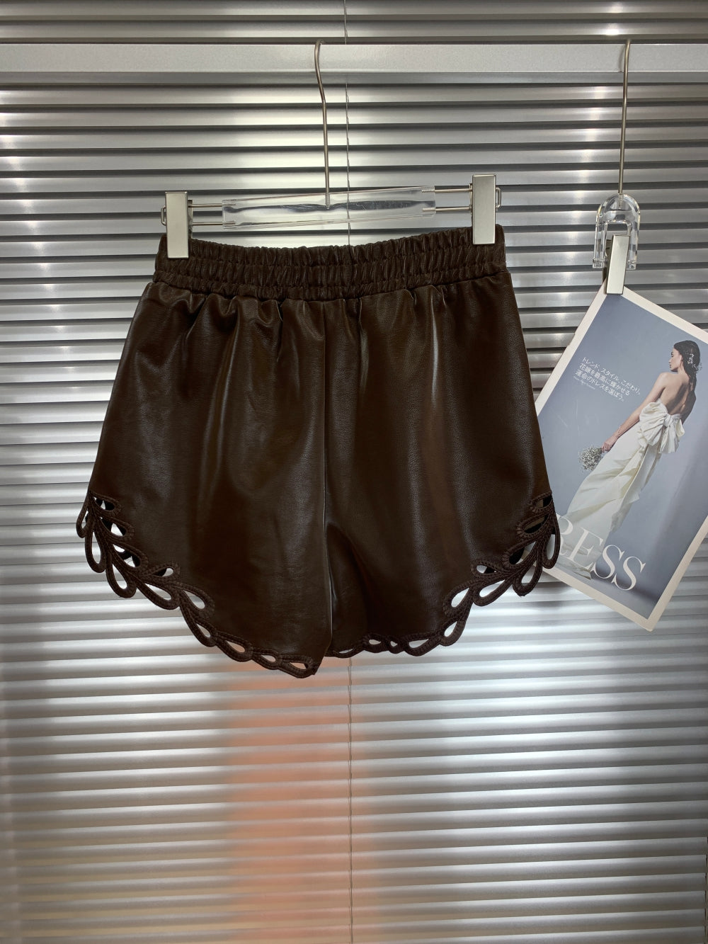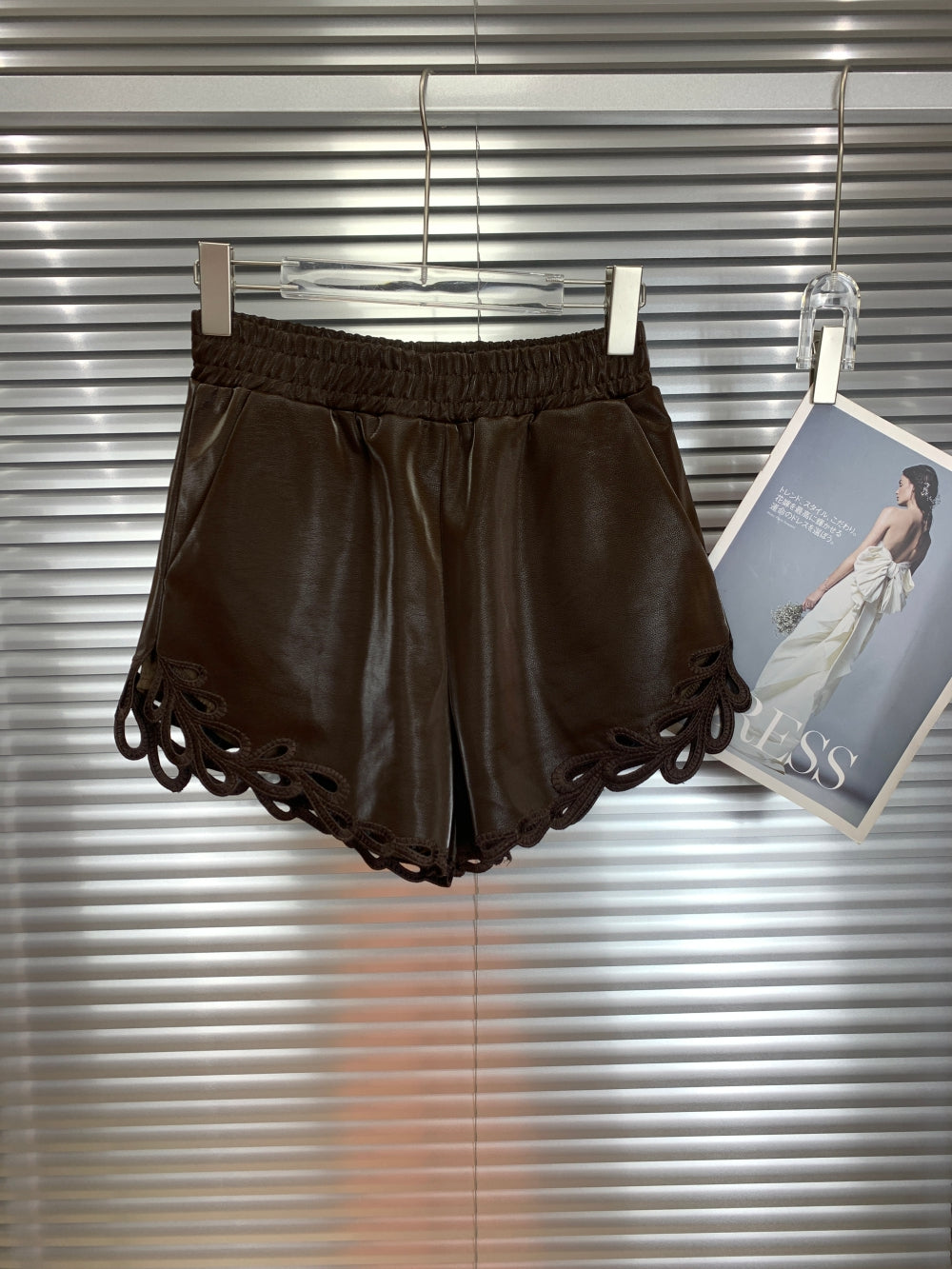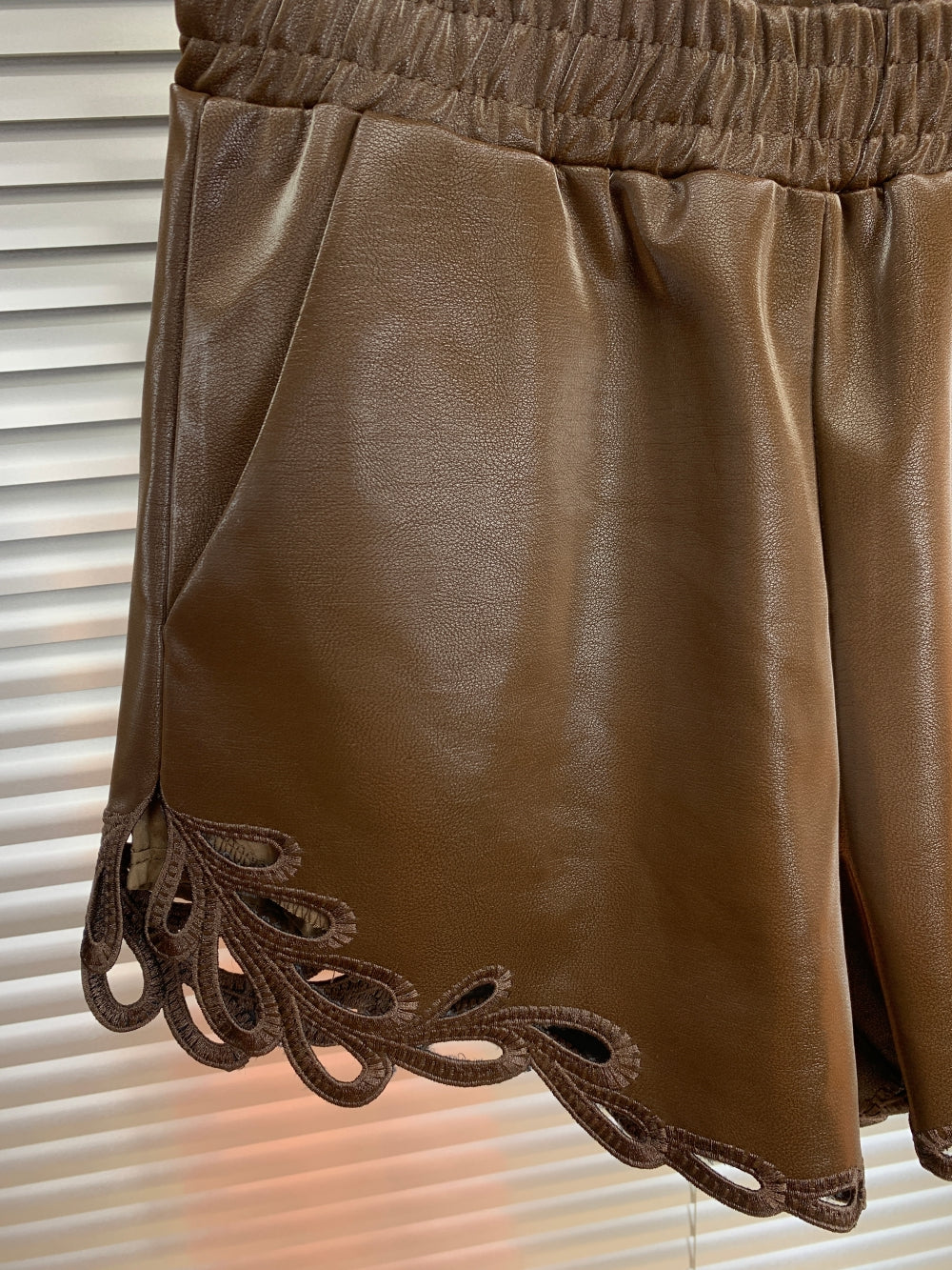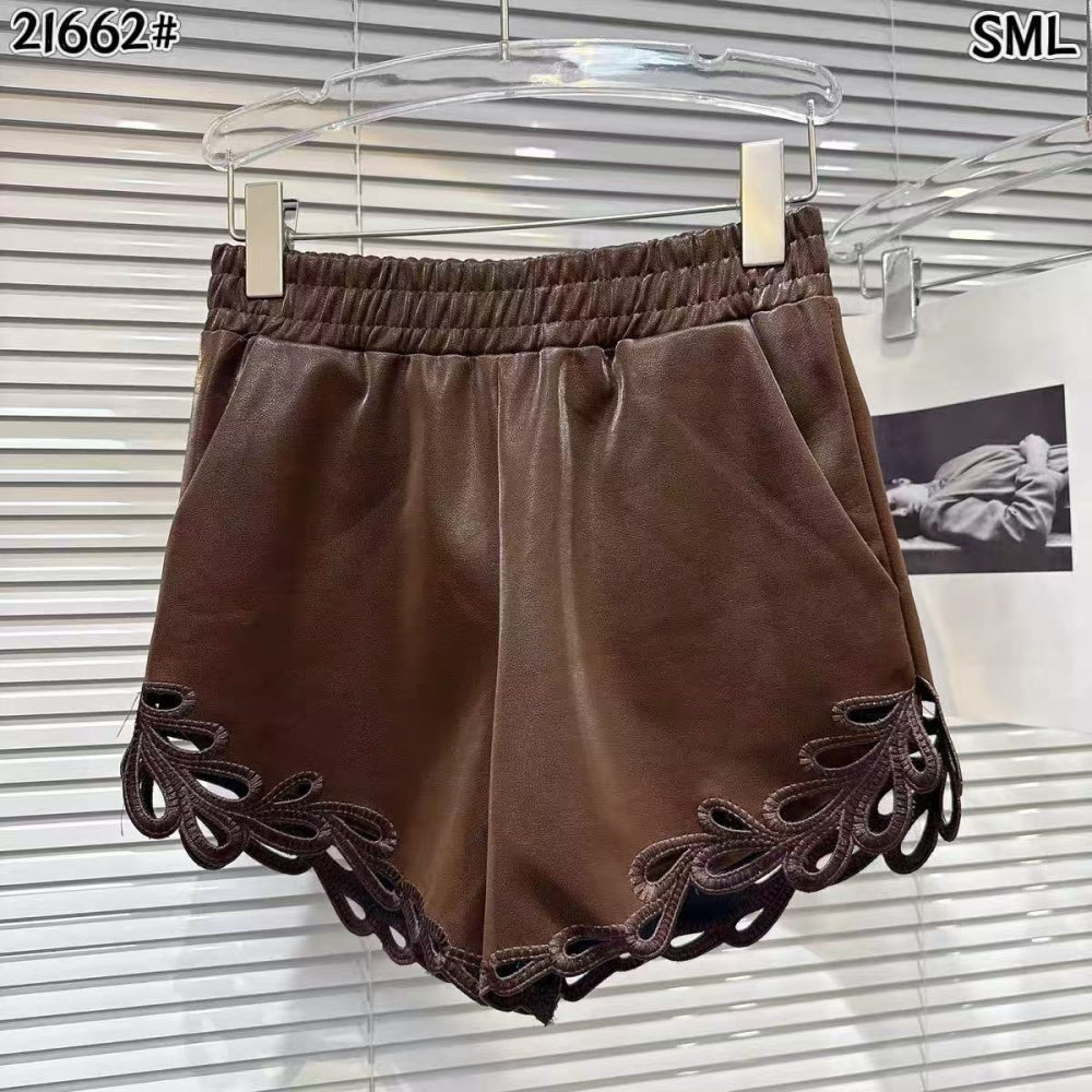 21662 Faux Leather Shorts with Cutout Hem