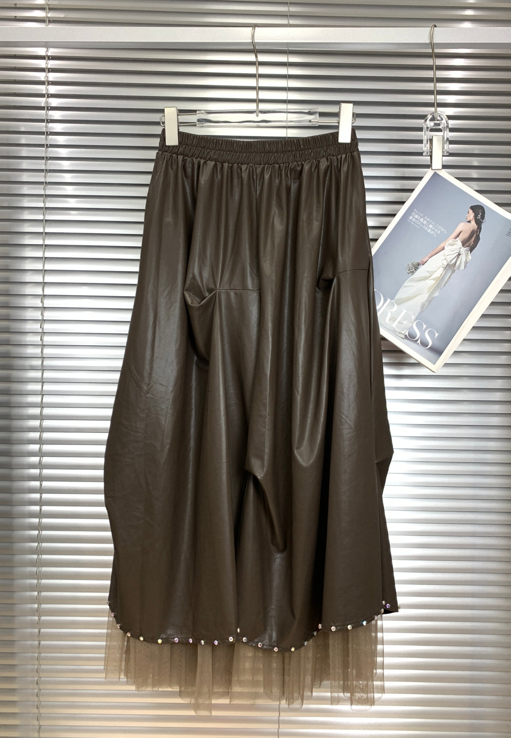 Details: Elastic waist, pearl studs at hem, tulle peekaboo