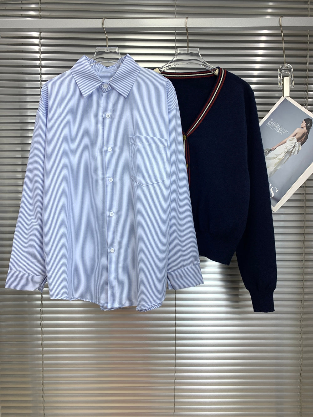 Composition: Cardigan 50% Viscose, 28% Polyester, 22% Nylon; Shirt 65% Polyester, 35% Cotton