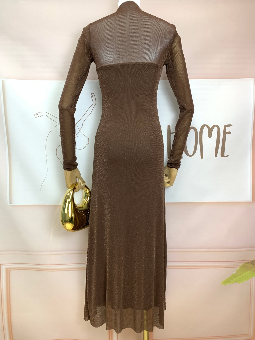21786 Sheer Rhinestone Mesh Maxi Dress