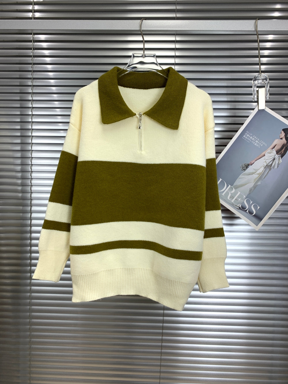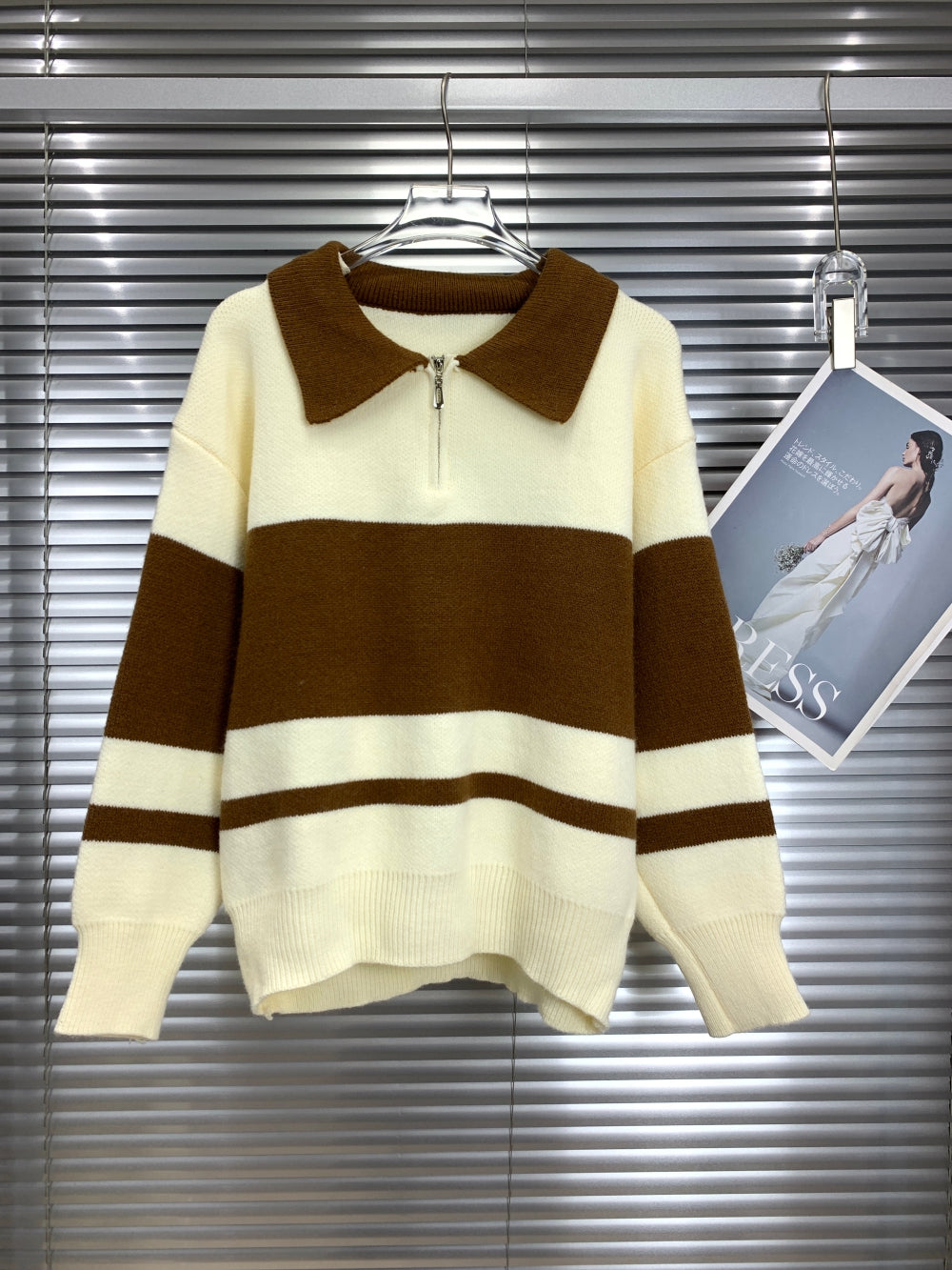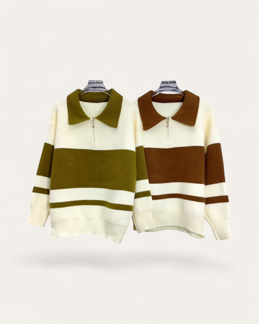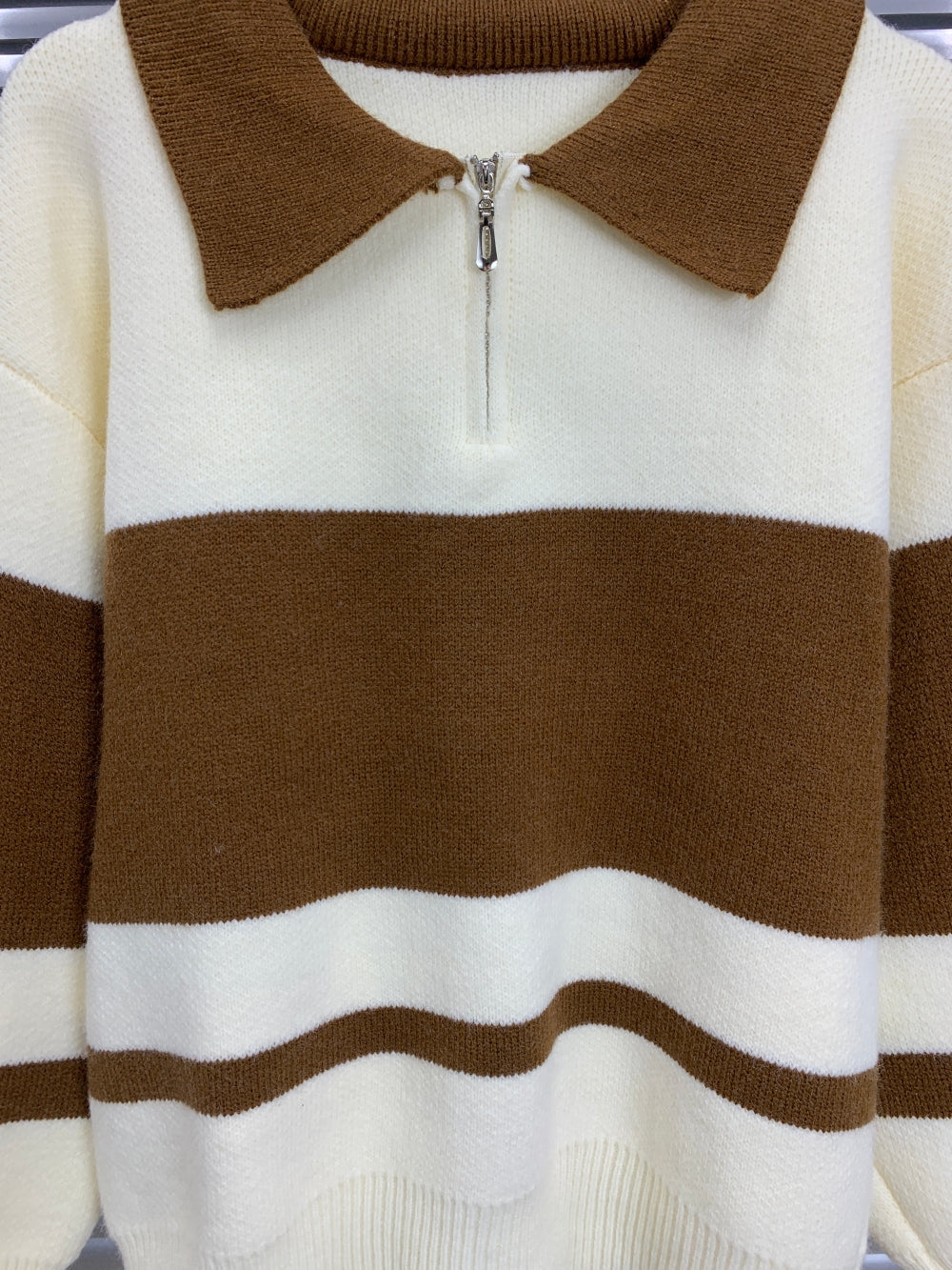 Details: Half-zip front, contrast collar, ribbed trims
