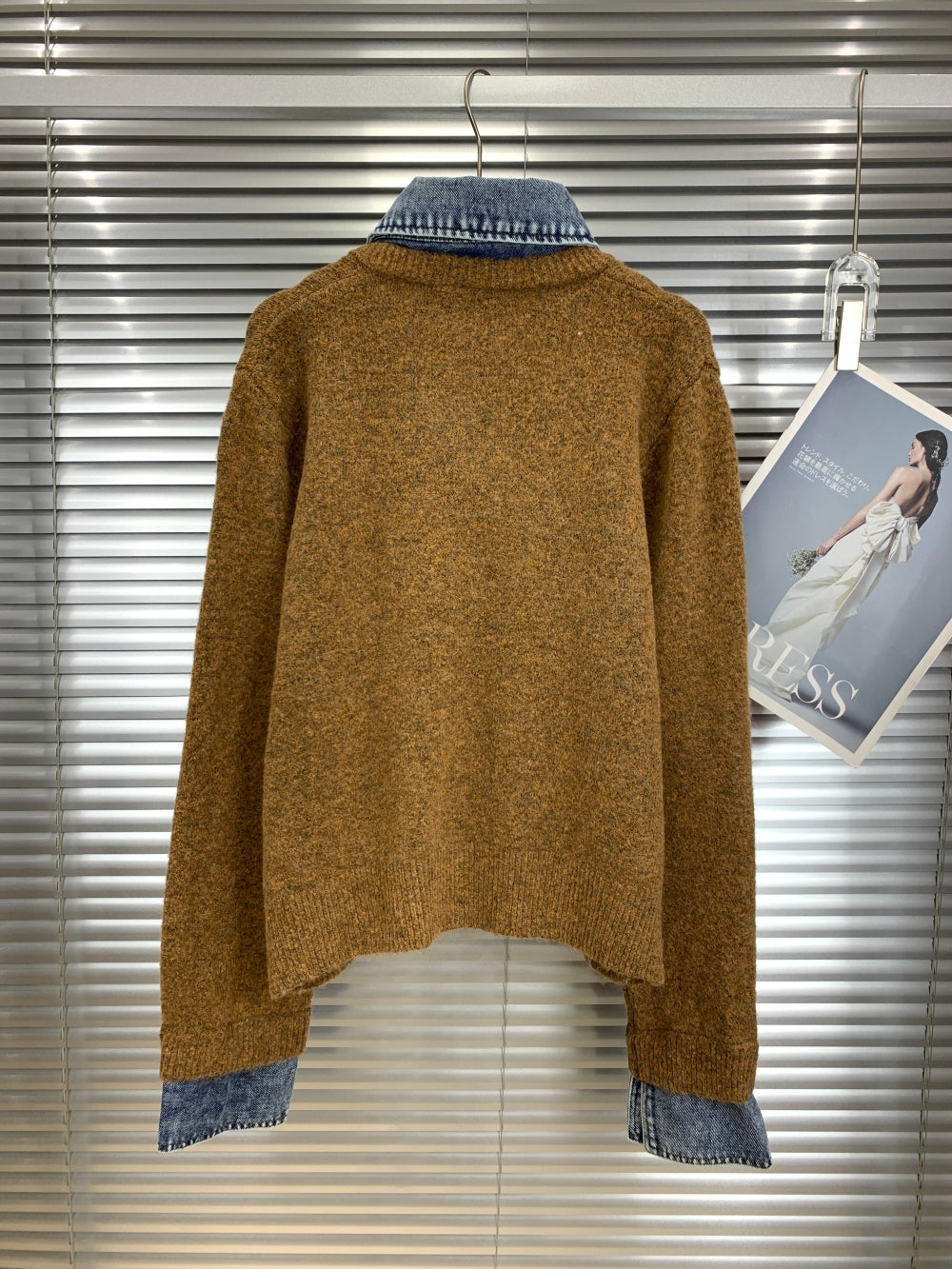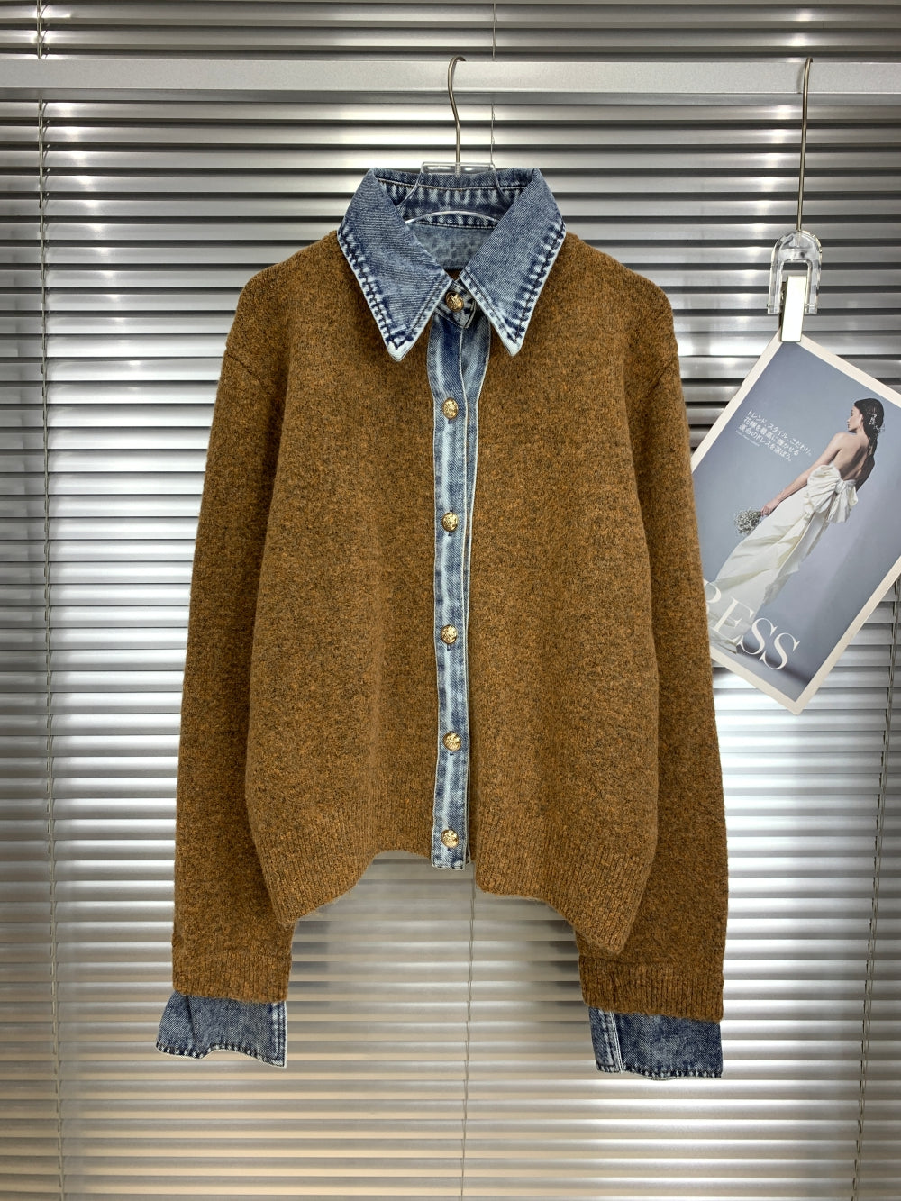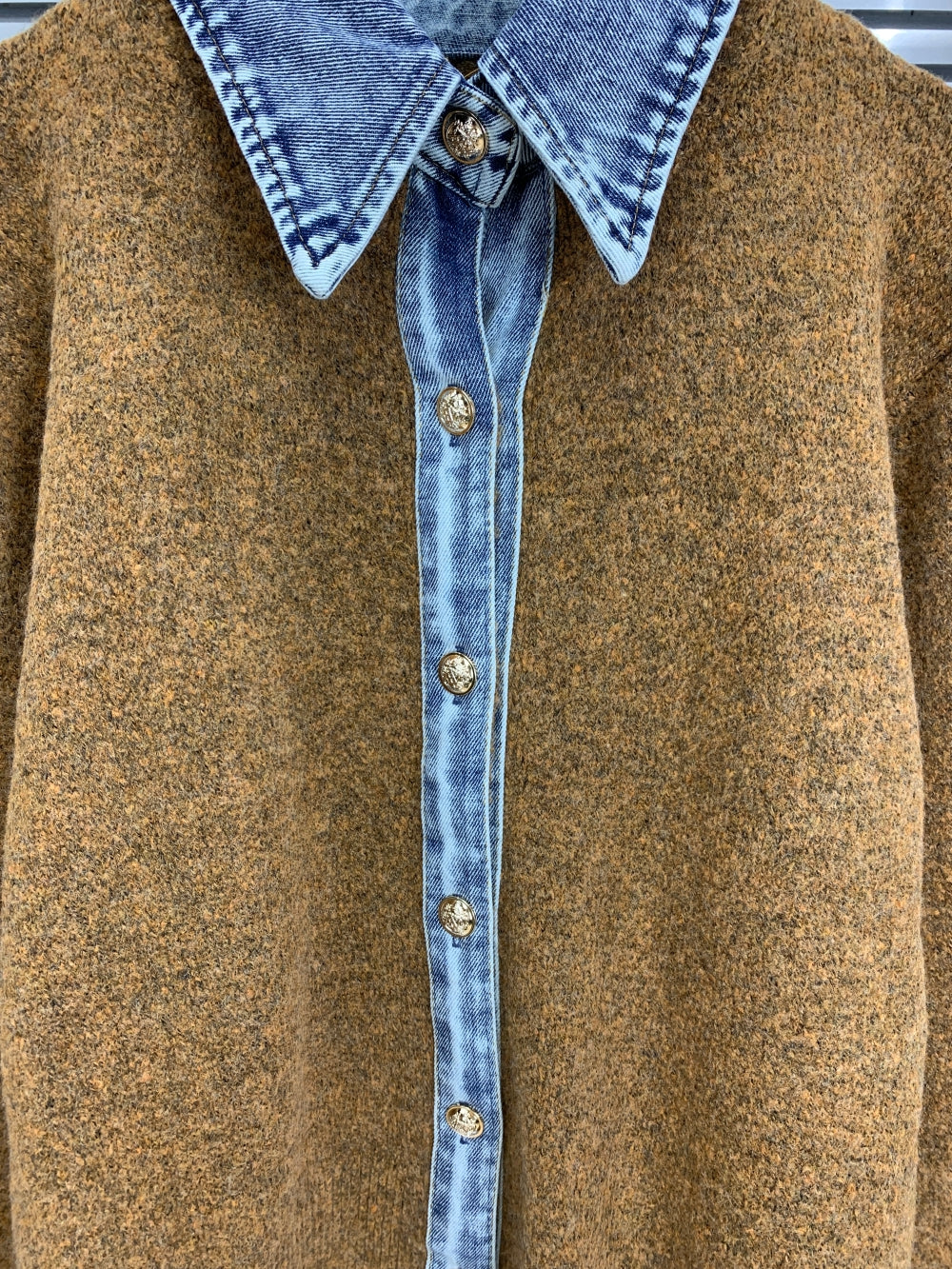 Details: Button-down style with contrast denim collar and cuffs, dual-layer effect, long sleeves