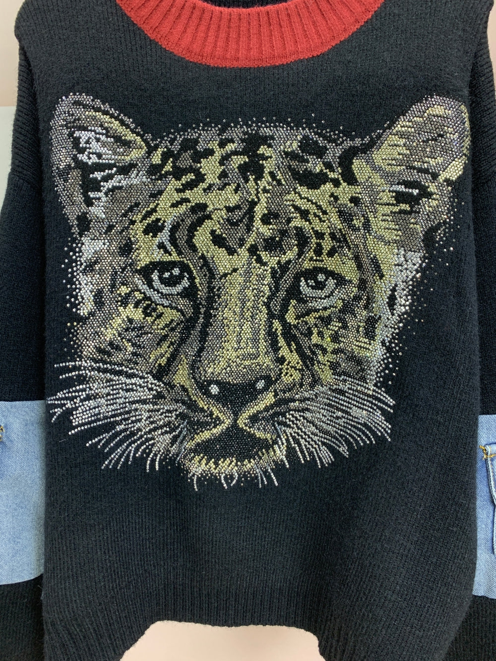 Composition %: 65% Acrylic, 25% Polyester, 10% Denim accents