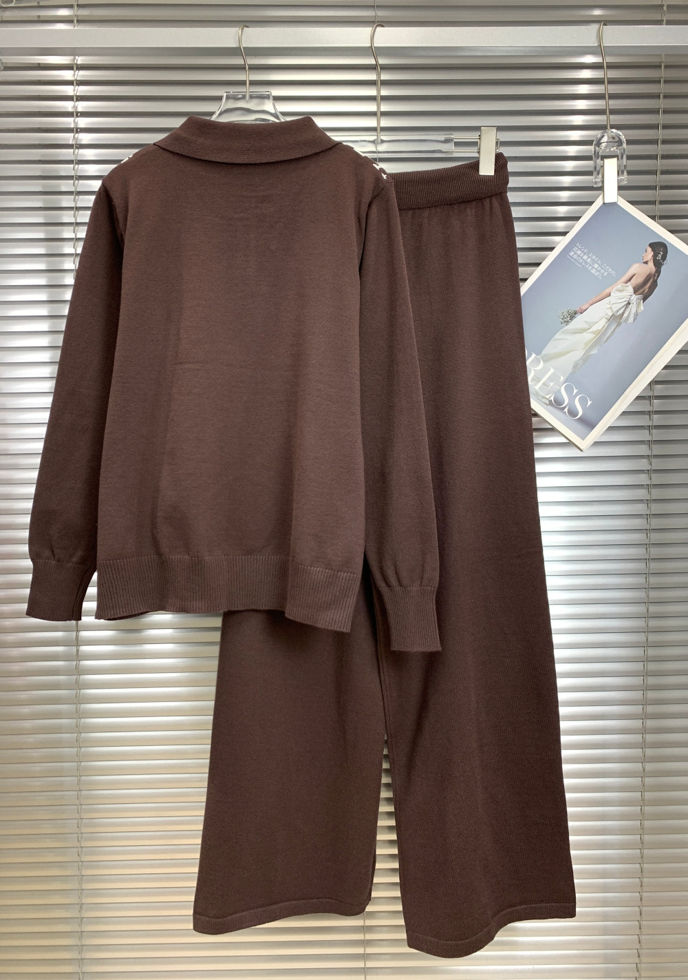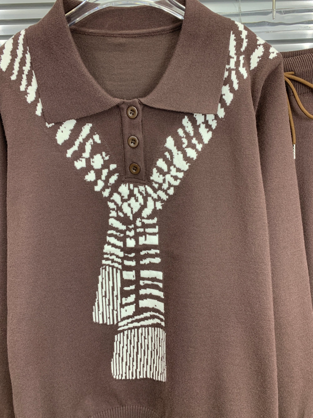 Details: Crew neck top with printed scarf graphic, matching wide-leg pants