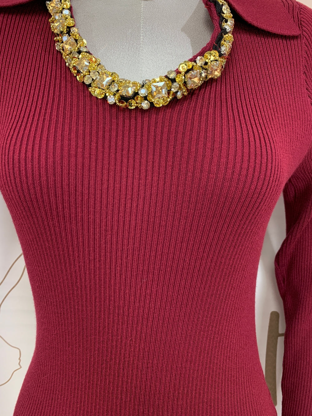 Details: Fold-over collar, long sleeves, body-hugging silhouette