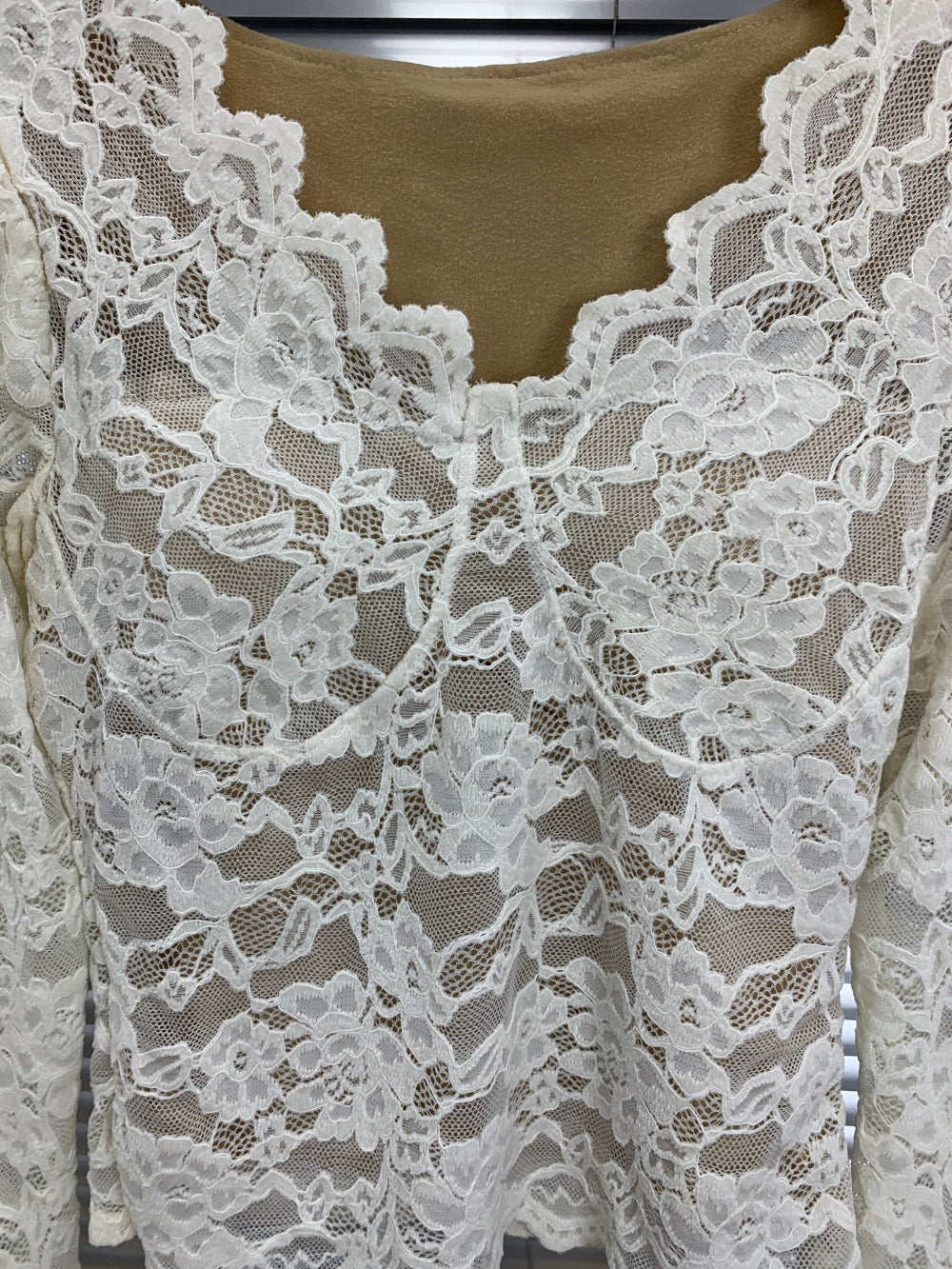 Scalloped Lace BlouseMaterial: Floral lace overlay