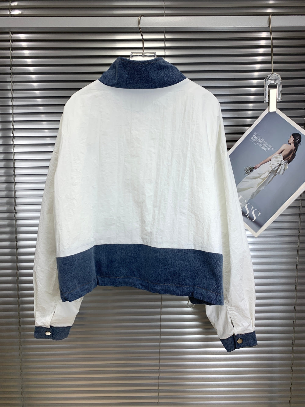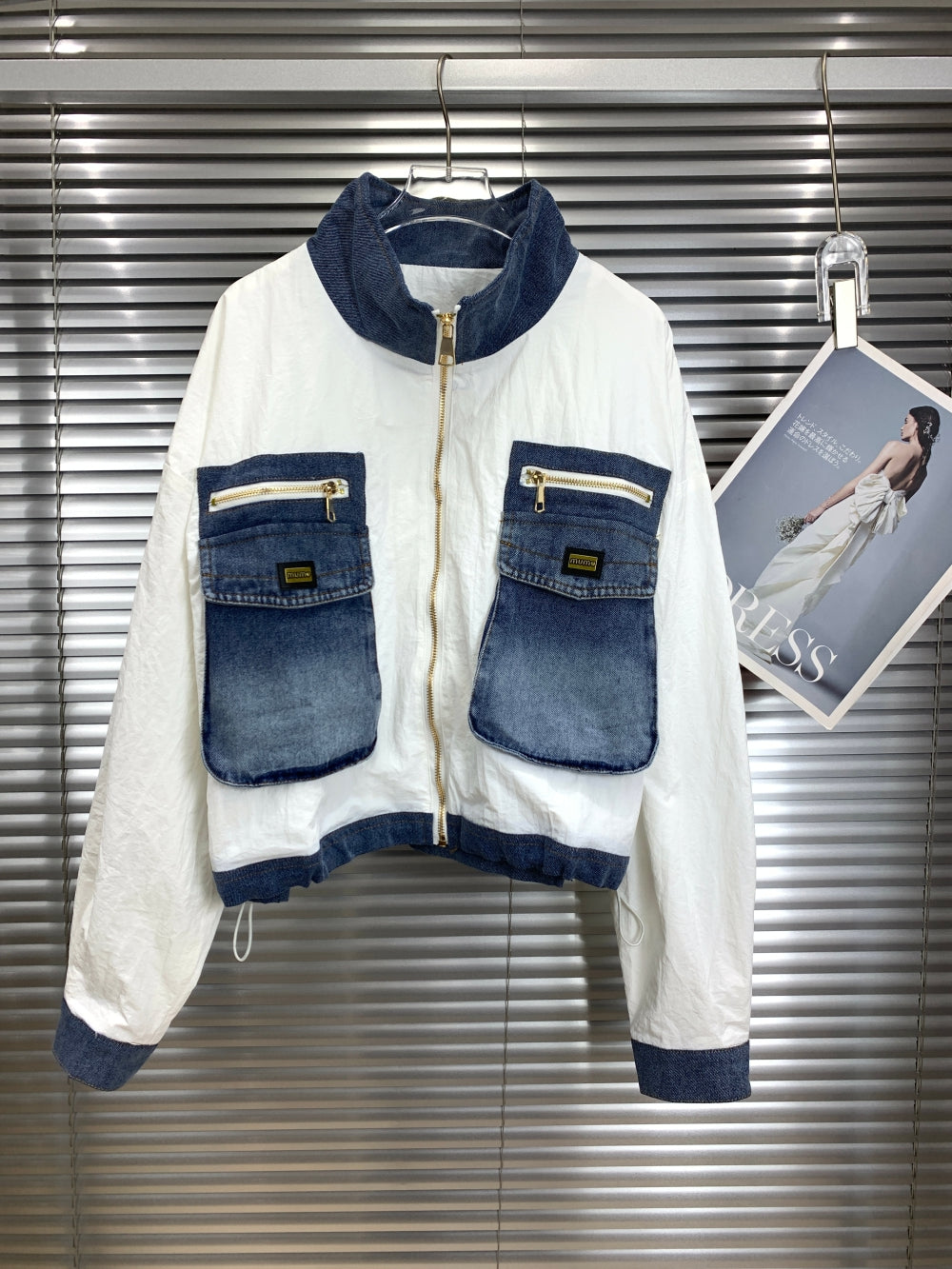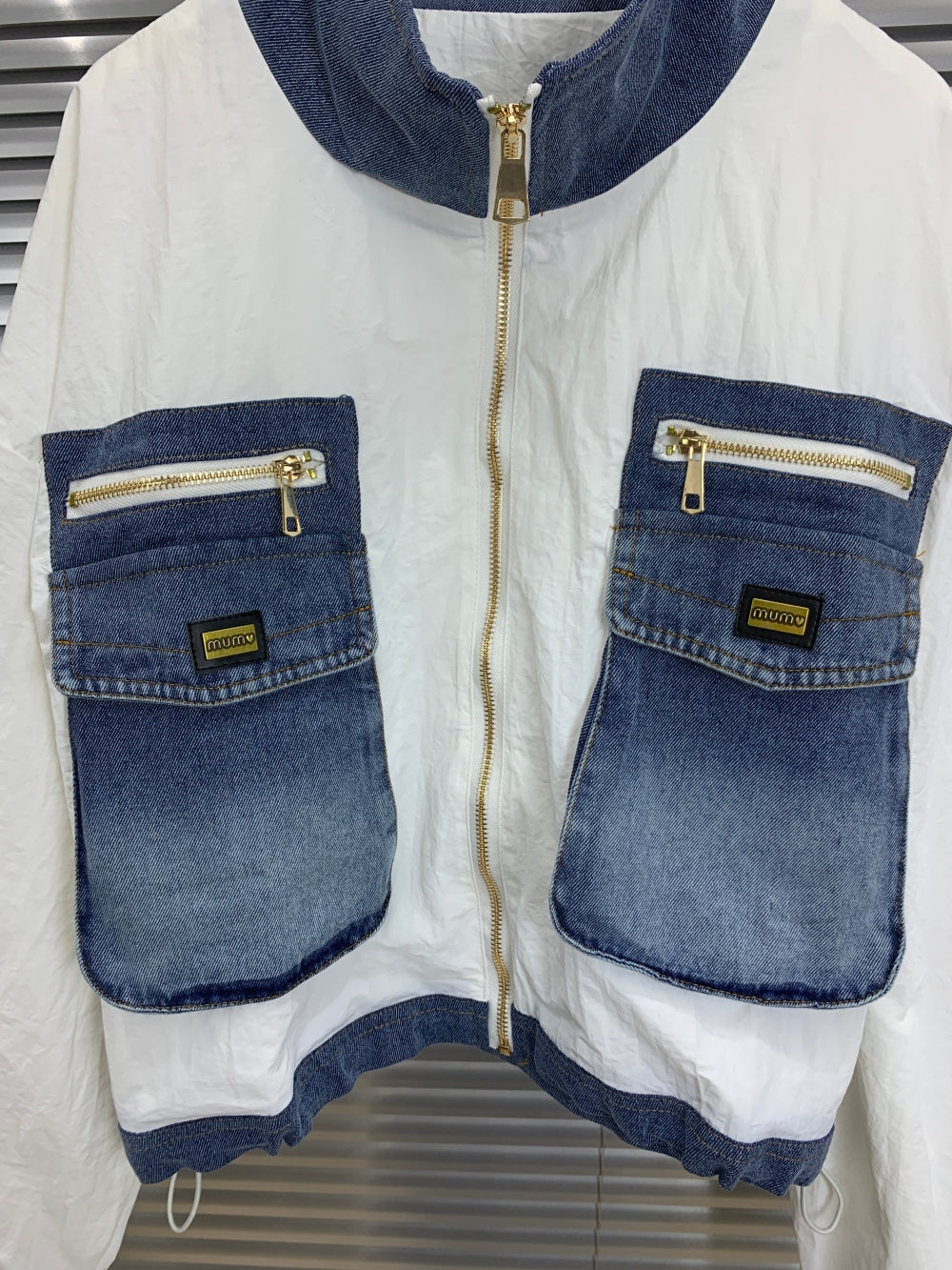 Details: Front zip, oversized gradient denim pockets, drawstring hem