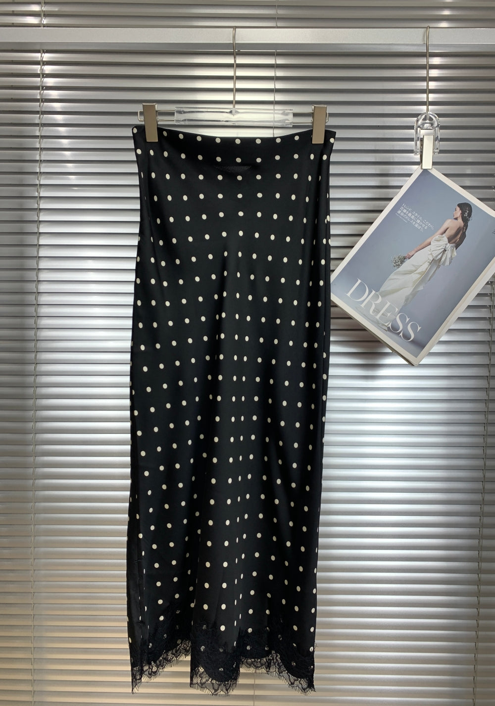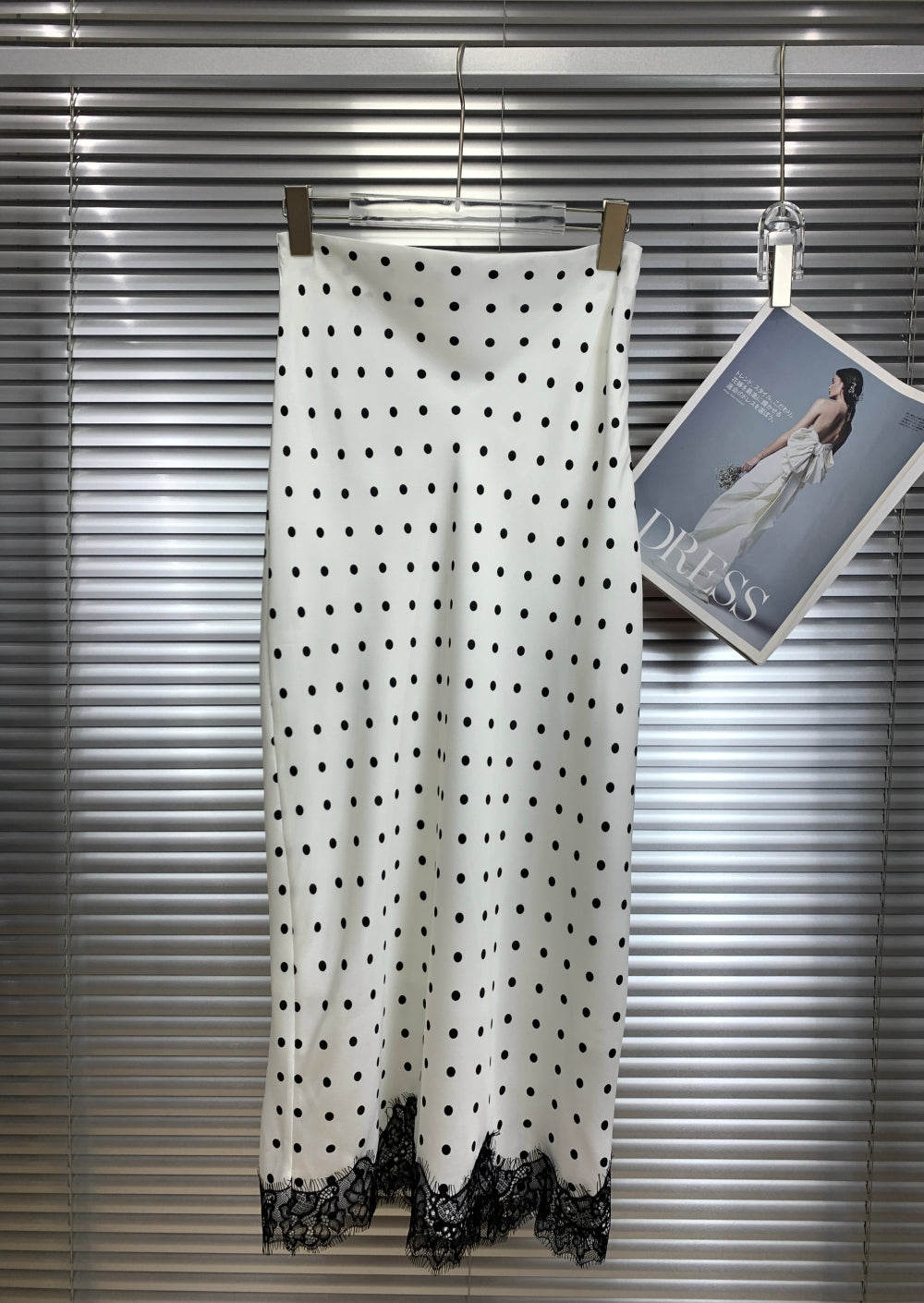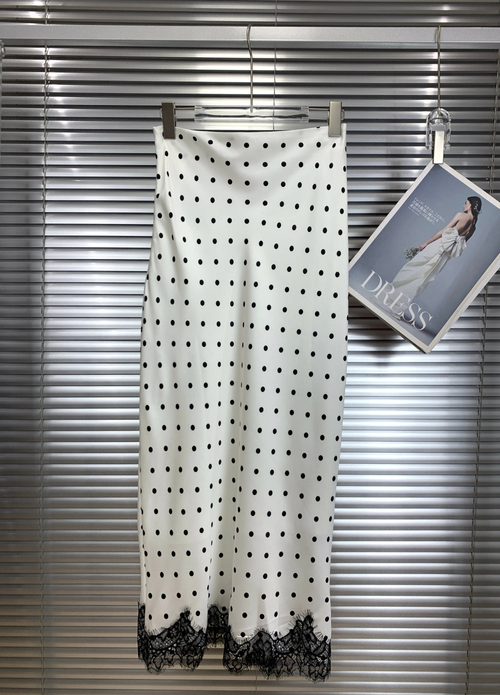 22239 Polka Dot Lace Trim Midi Skirt