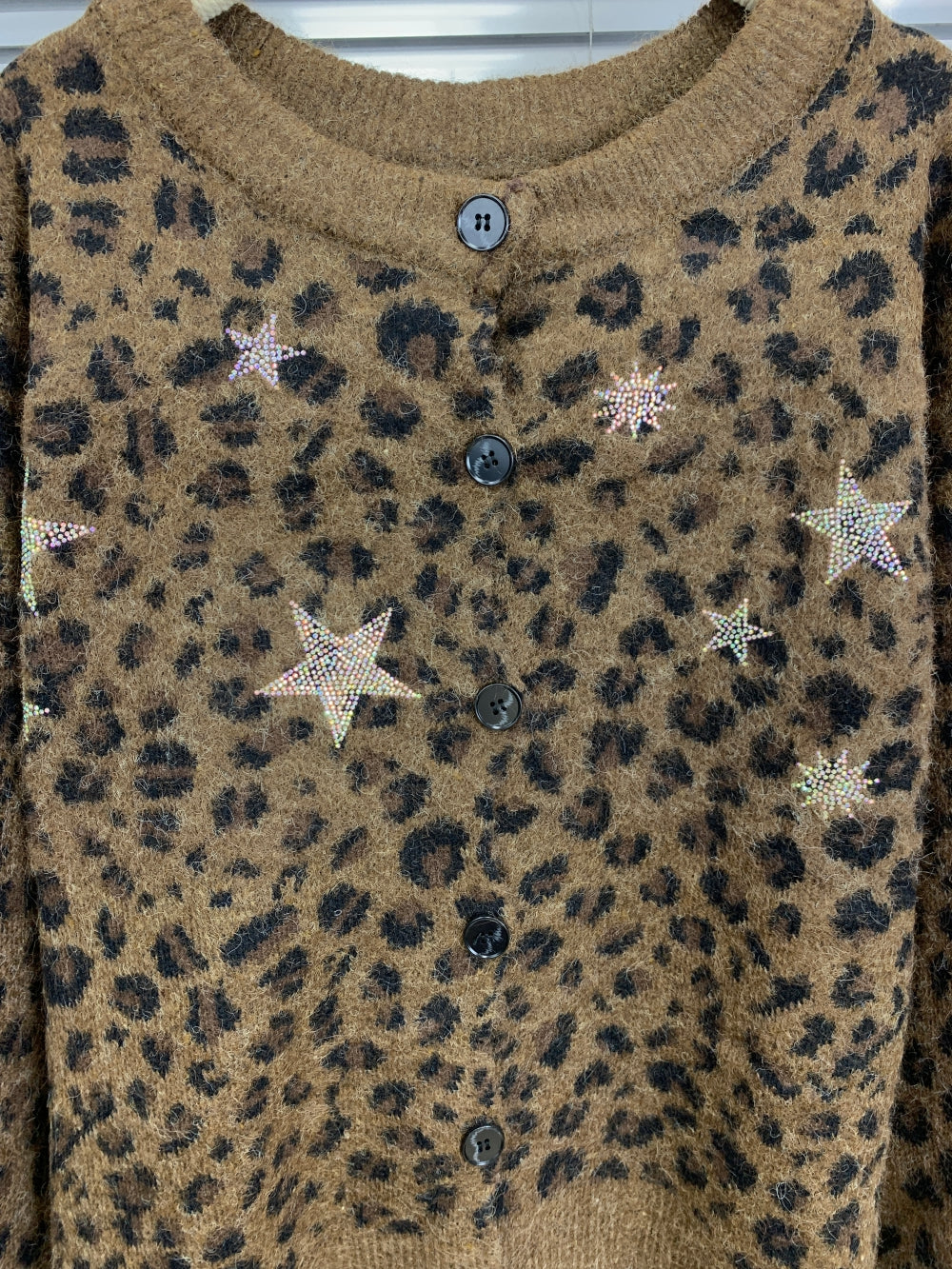 Details: Rhinestone star appliqués, teddy bear graphic on back, button-down front