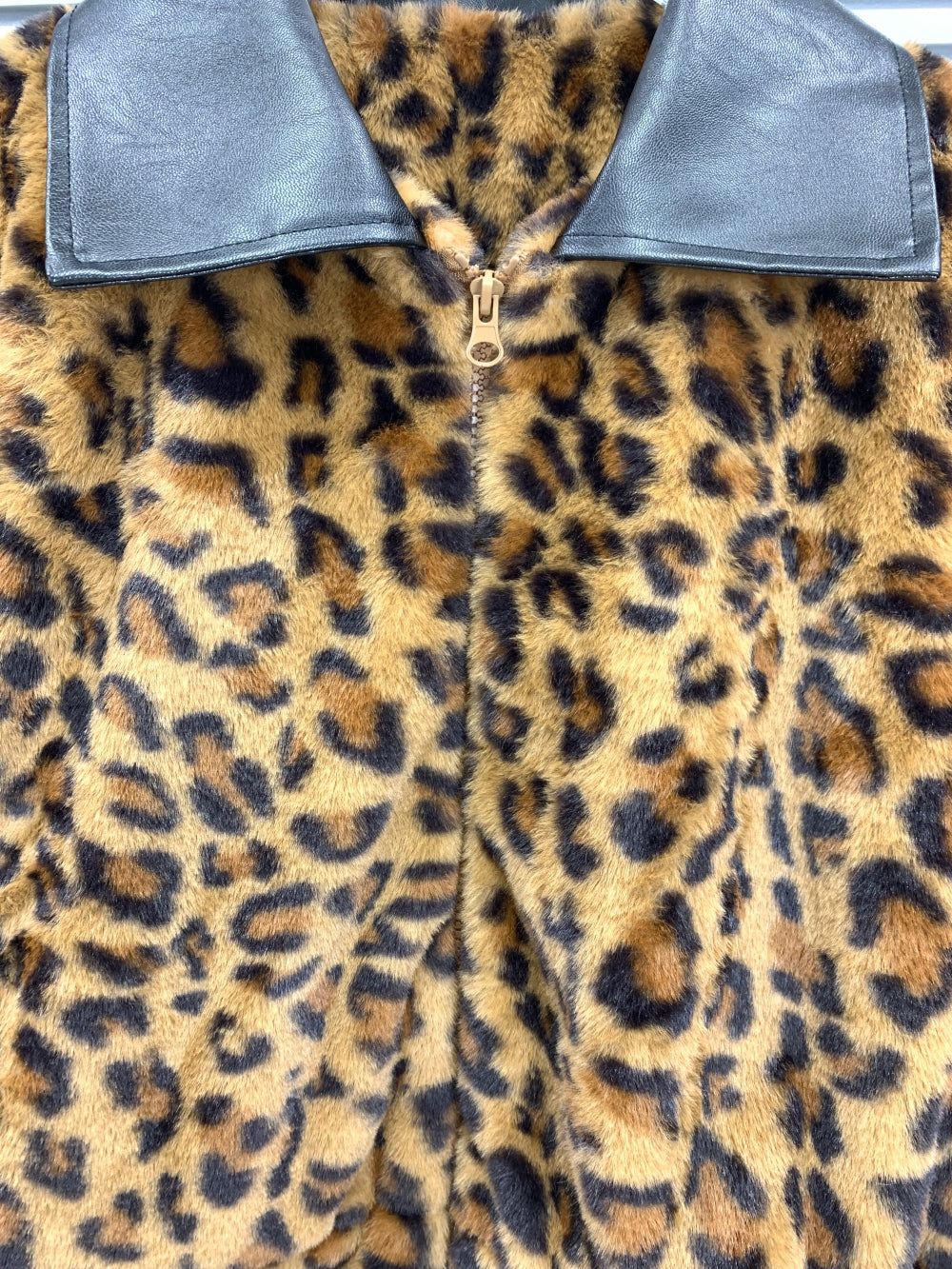 Details: Front zip closure, elastic hem, contrast faux-leather collar