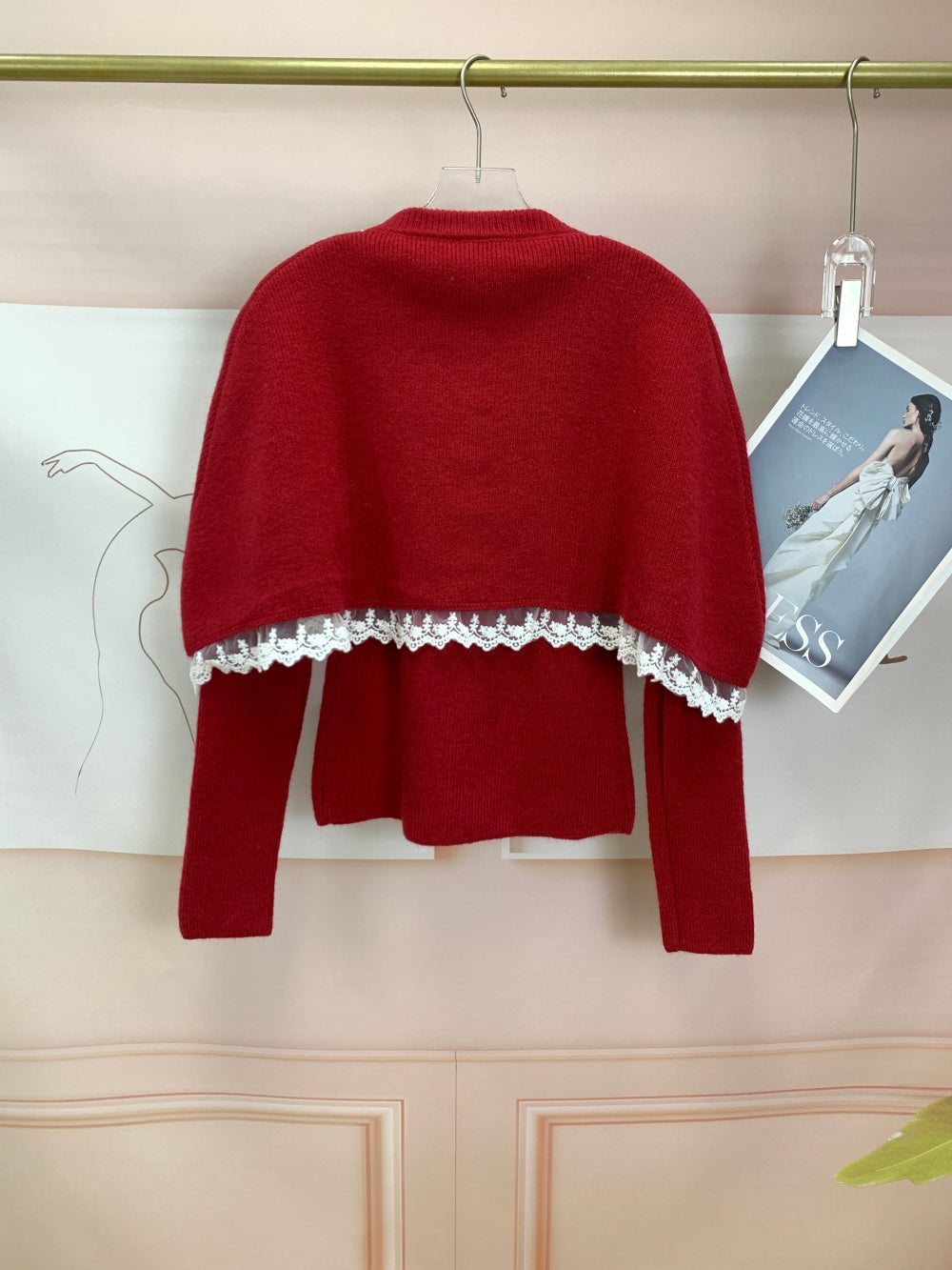 Details: Faux pearl and gem embellishments, lace trim along yoke, buttoned front, available in red and black
