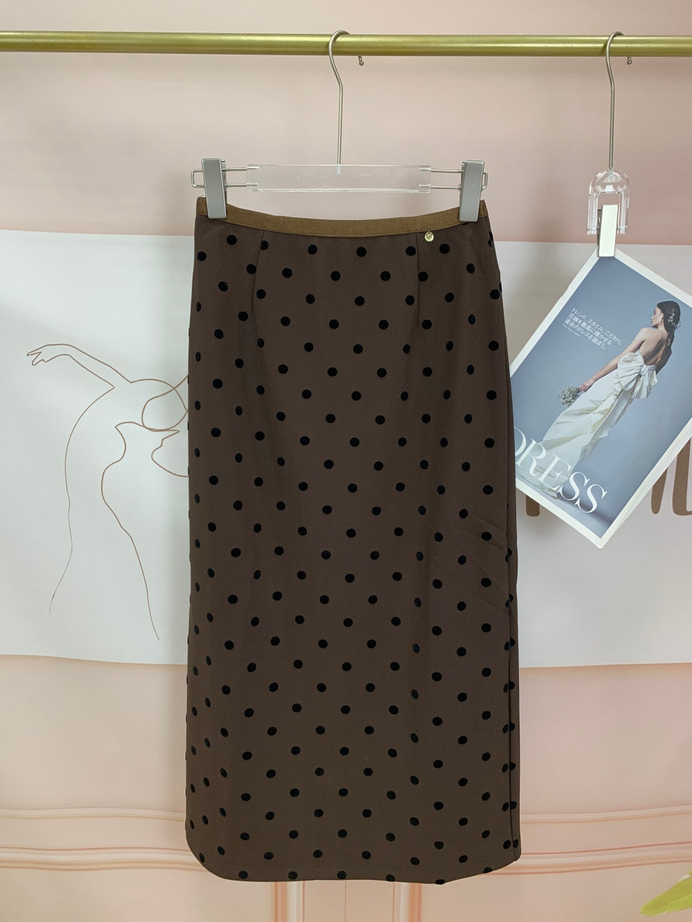 Details: High waist, back slit, soft velvet texture, invisible side zipper, available in wine red and brown