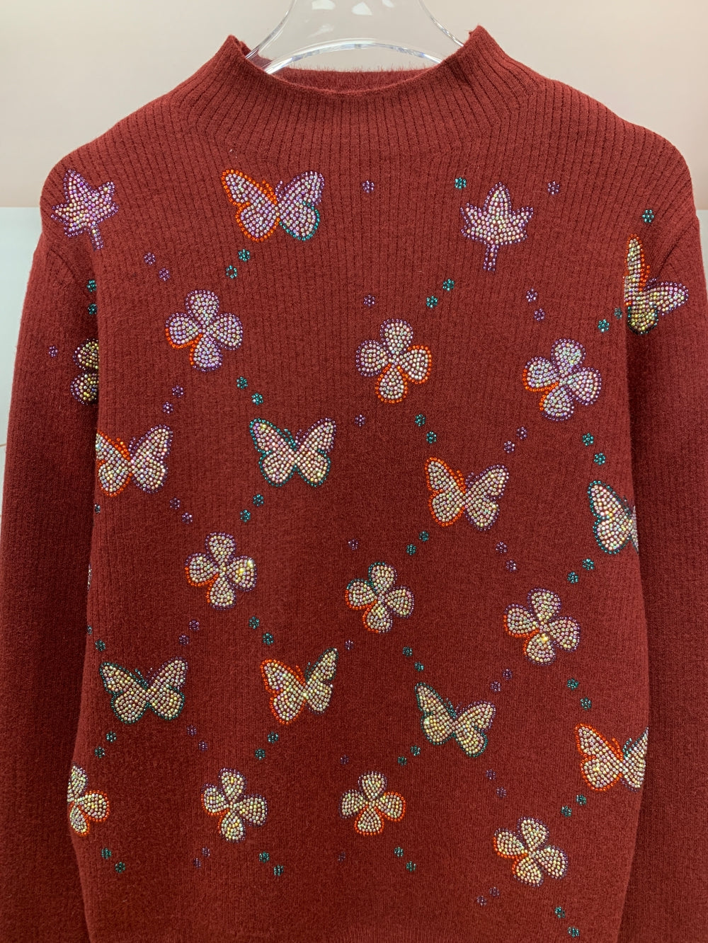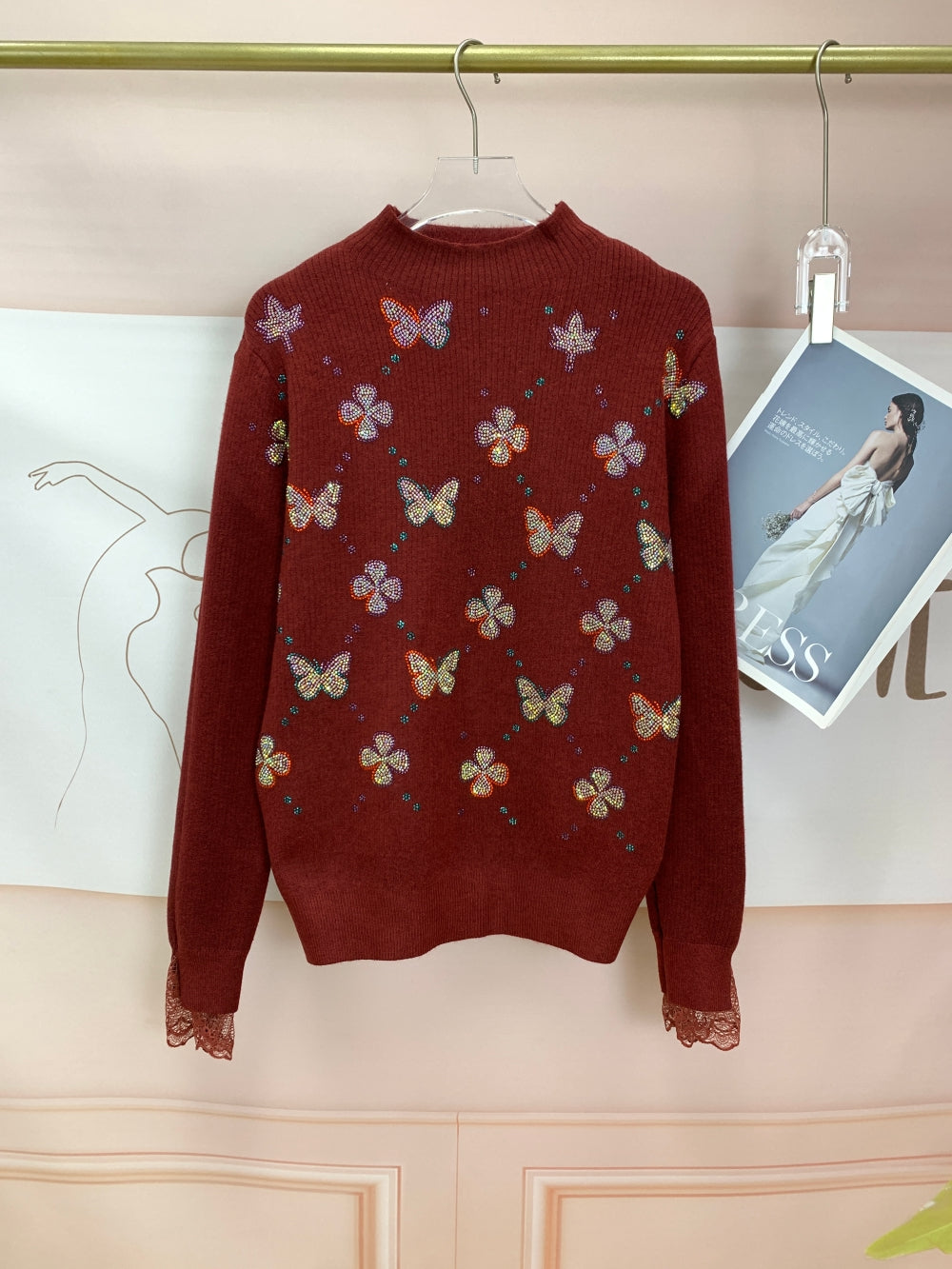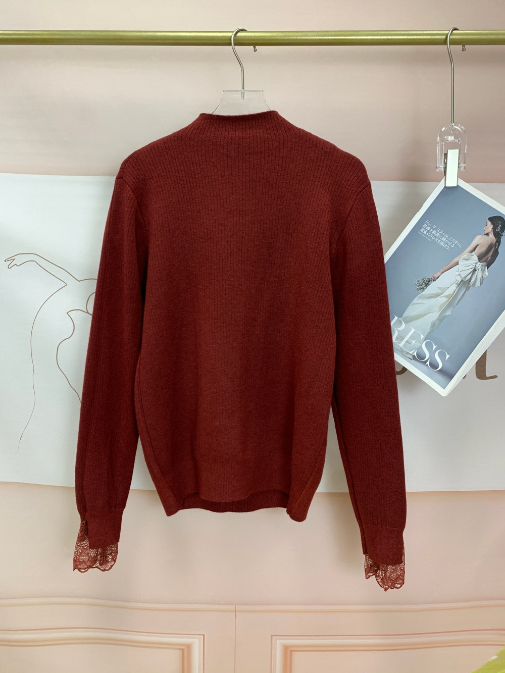 Details: Mock neck, lace-trimmed cuffs, elastic hem