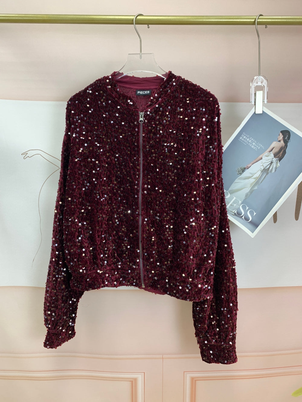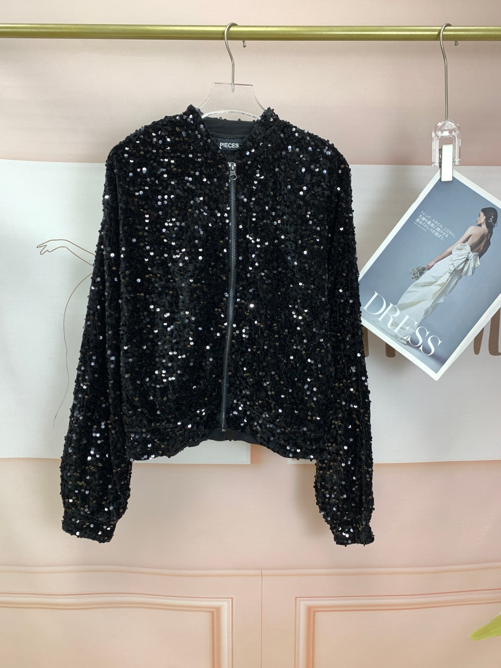 22323 Sequin Zip Bomber Jacket