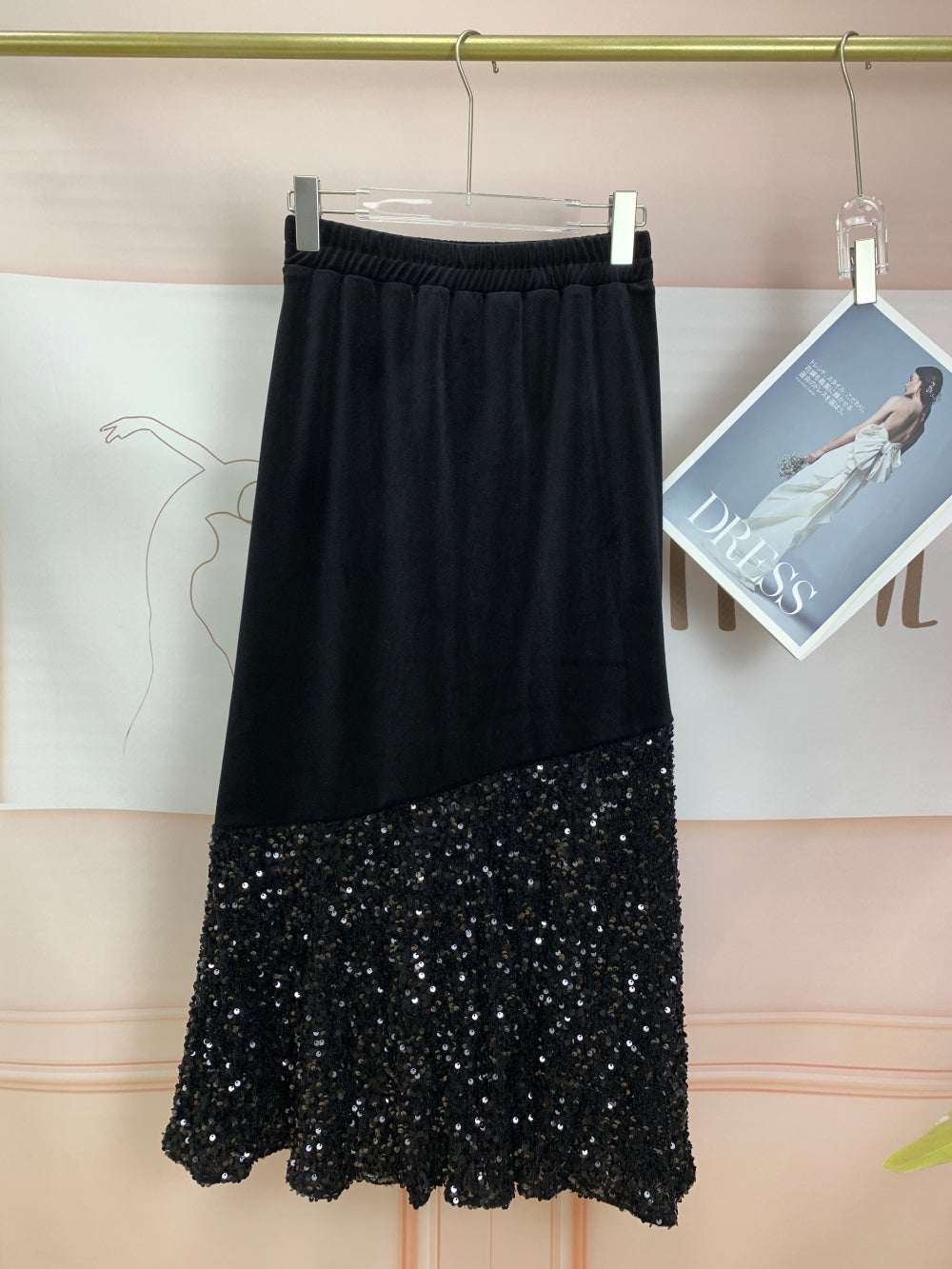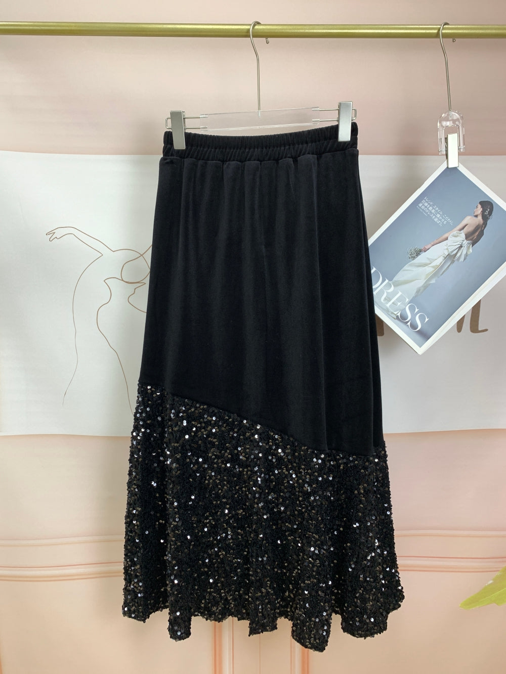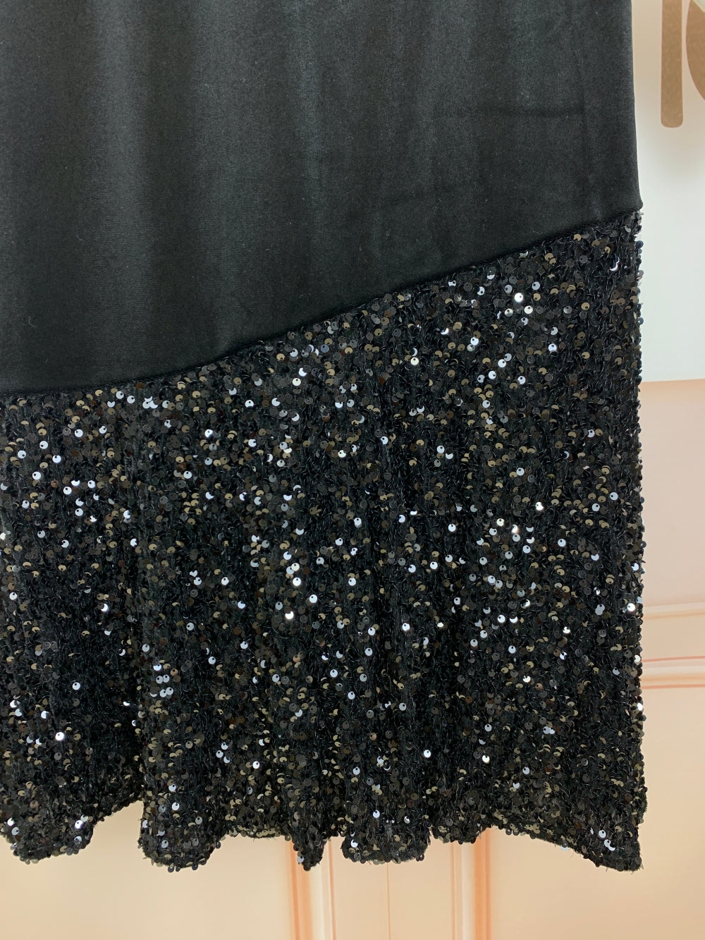 Pattern: Solid black with sequin-embellished hem