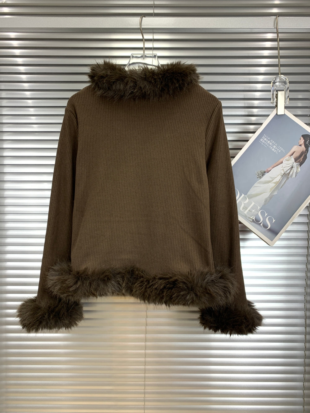 Details: Plush faux fur trim on neckline, cuffs, and hem; flattering waist shaping