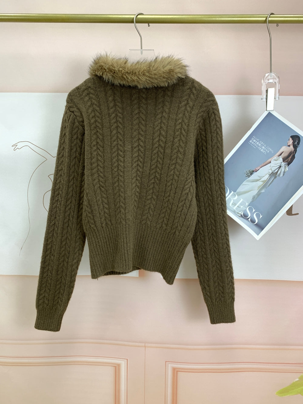 Cable Knit Fur Collar CardiganMaterial: Cable knit + faux fur