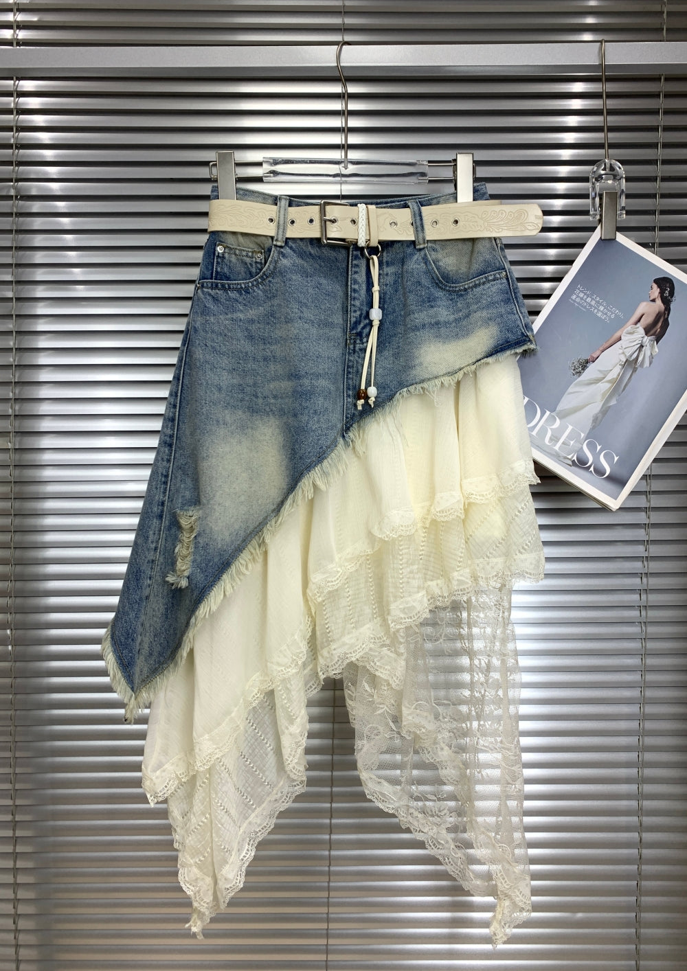 23268 Denim & Lace Asymmetrical Layered Skirt