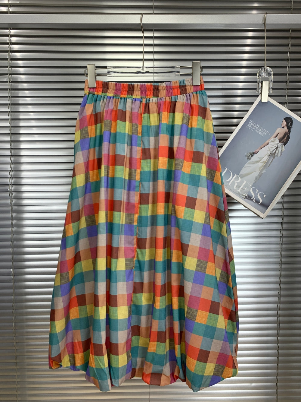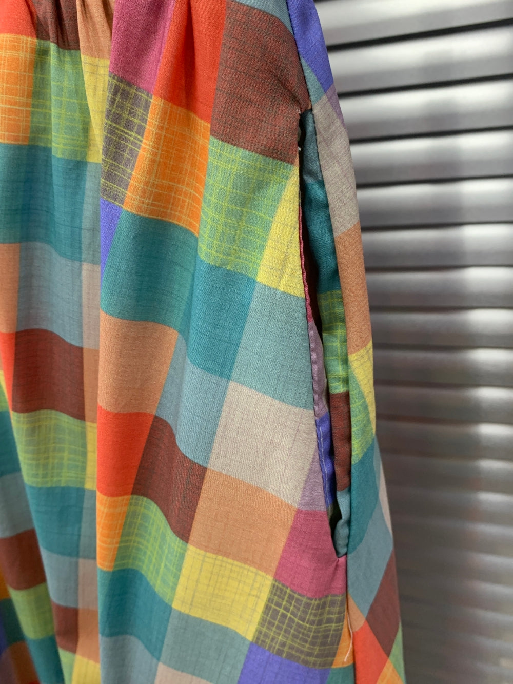 Details: Elastic waistband, bubble hem, bright multicolor blocks