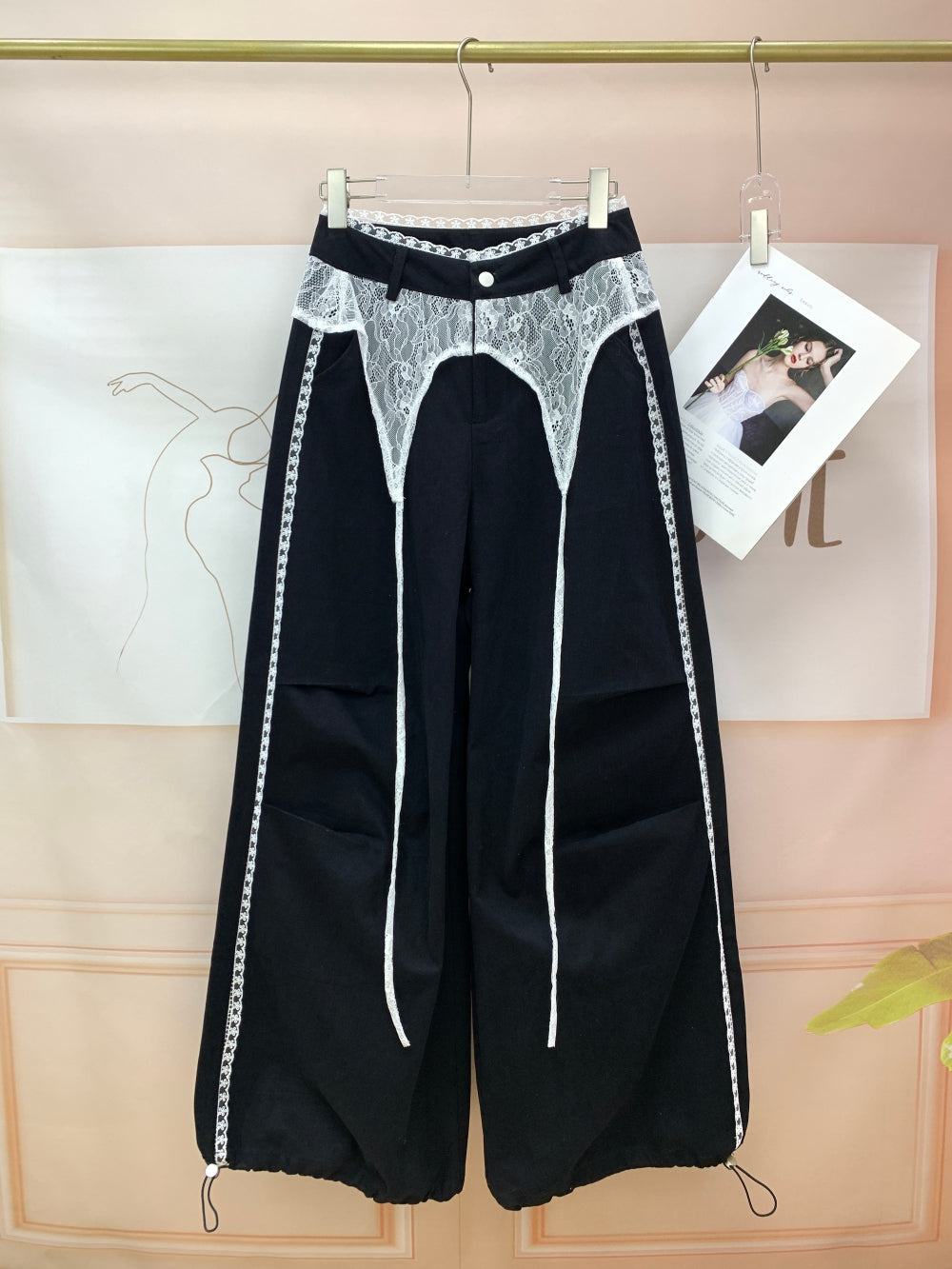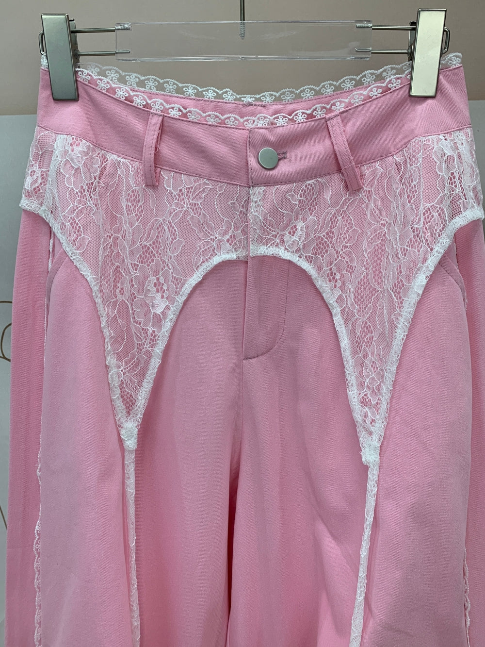 Details: Lace waist overlay design, contrast piping along legs, elastic waistband, sporty streetwear style