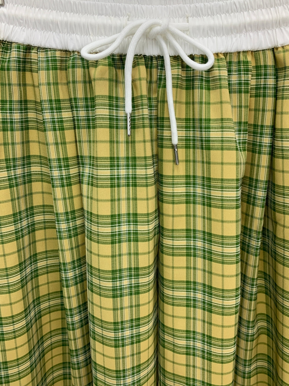 Details: Elastic waistband with drawstring, lightweight gathered fabric, soft drape