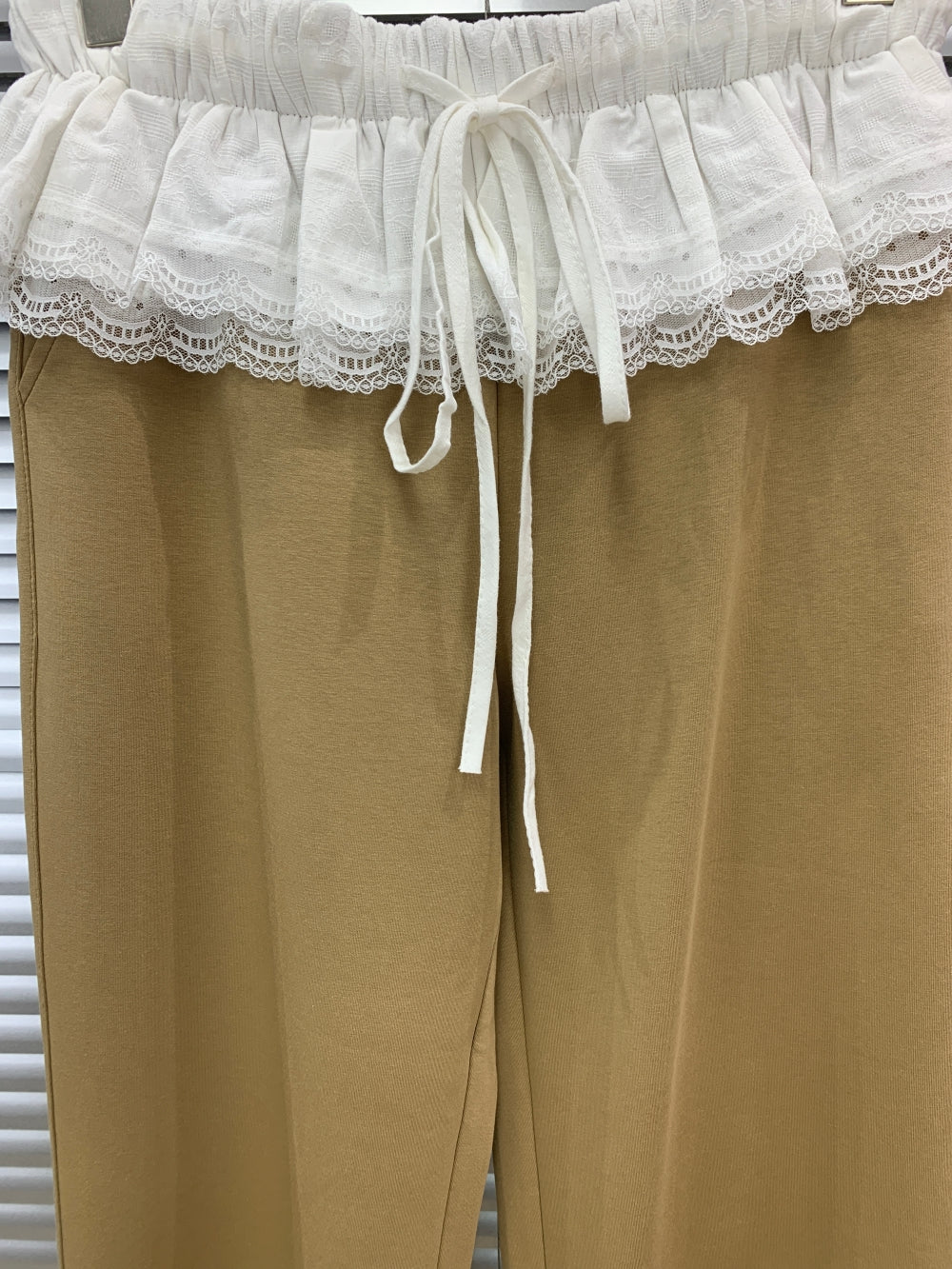 Details: Lace waistband overlay, drawstring waist, side tie accents, soft stretch fabric